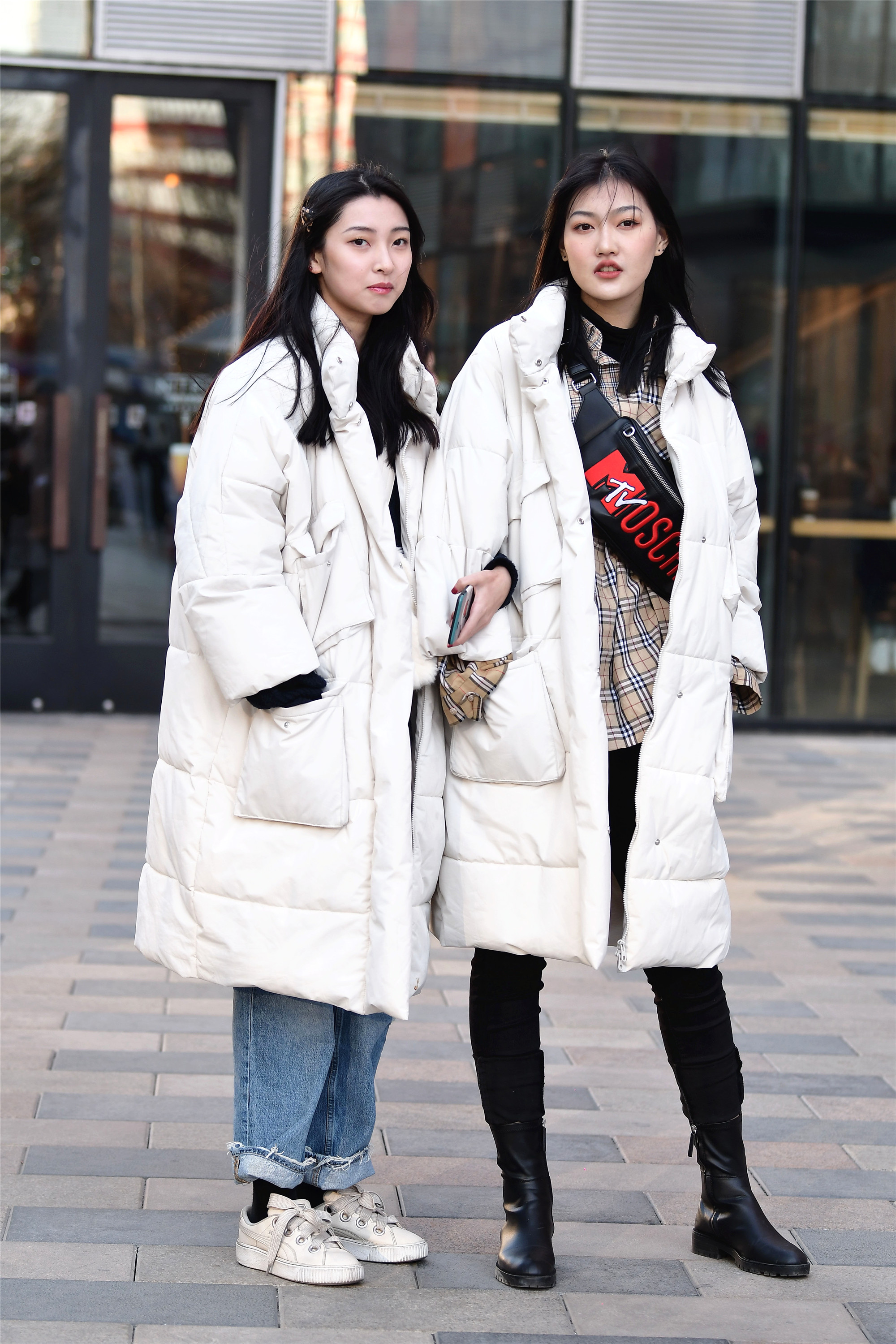 到了冬天,出门要穿着羽绒服才好,爱美的姑娘也都不在是美丽动人的装束,这一对身材高挑的闺蜜,她们选择一款白色长款的羽绒服,百搭时尚,内搭可以随意的组合,非常实用。