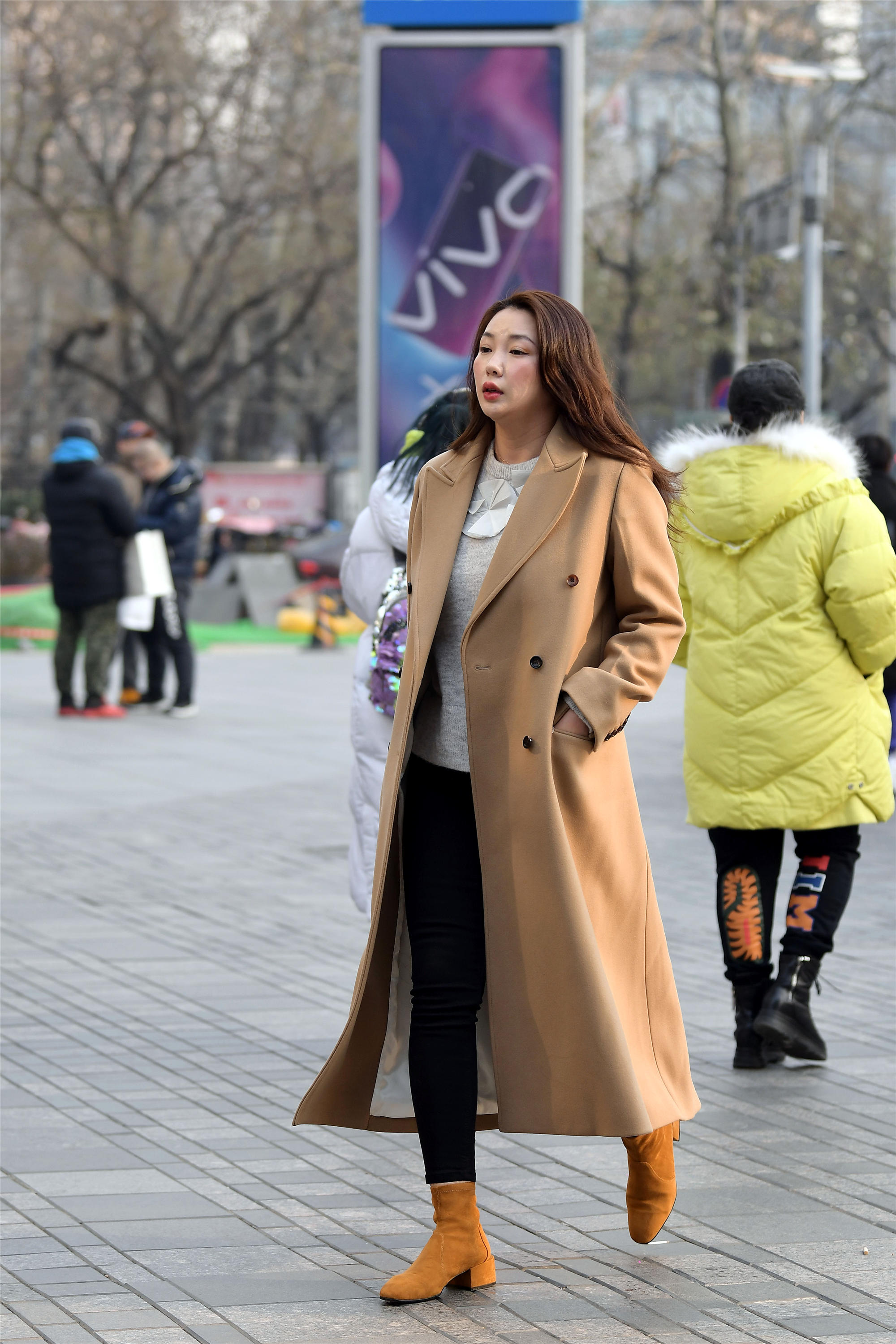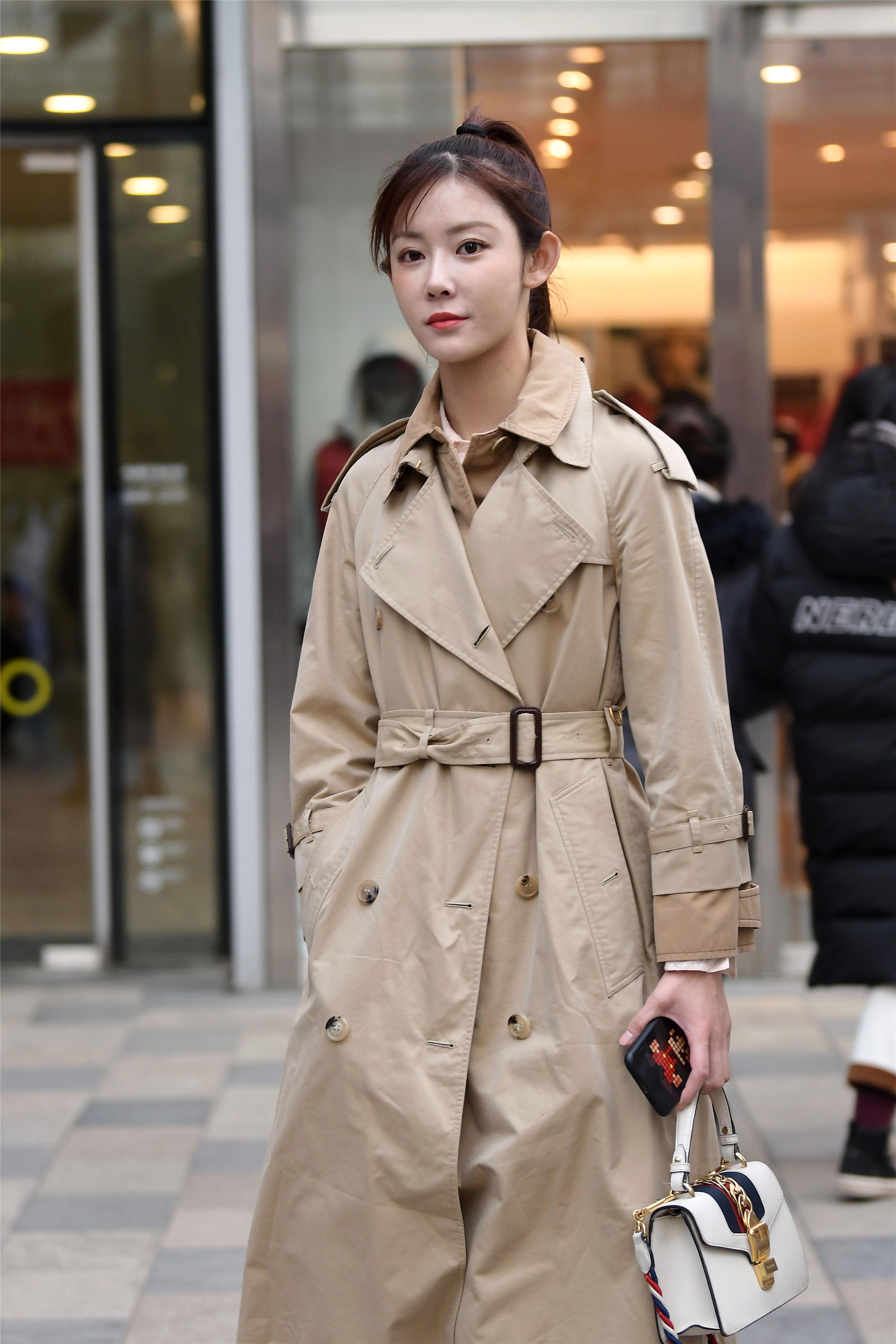 冬季的小姐姐搭配风衣出门,也可以穿搭的很有风度