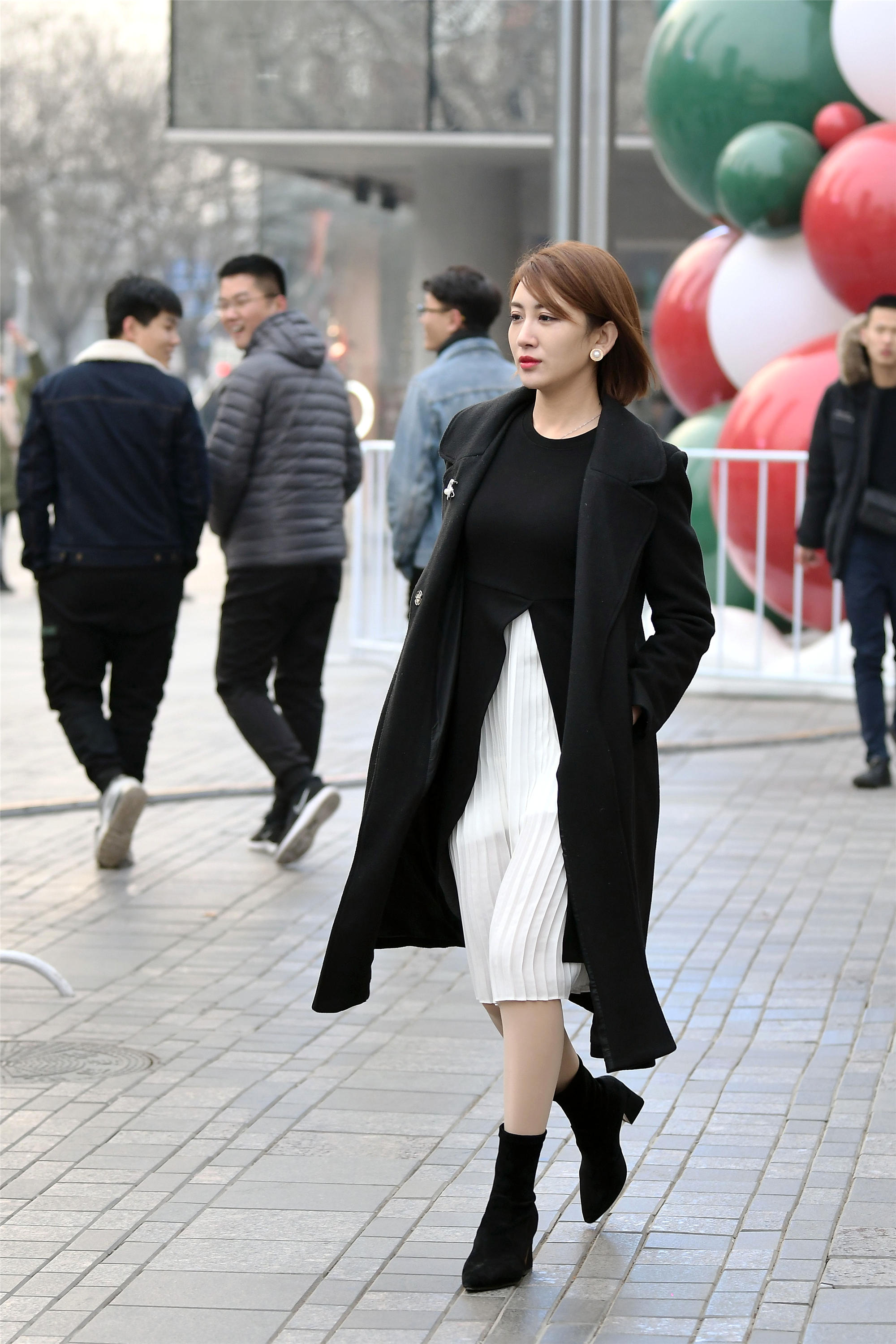 风衣搭配裙子,这样的搭配让你觉得似乎不是冬天,黑白色的裙子,显得更有层次感,搭配着风衣,下摆展开,似乎风度自然而然的流露出来,这样穿搭非常漂亮,很少有人能够驾驭得了。