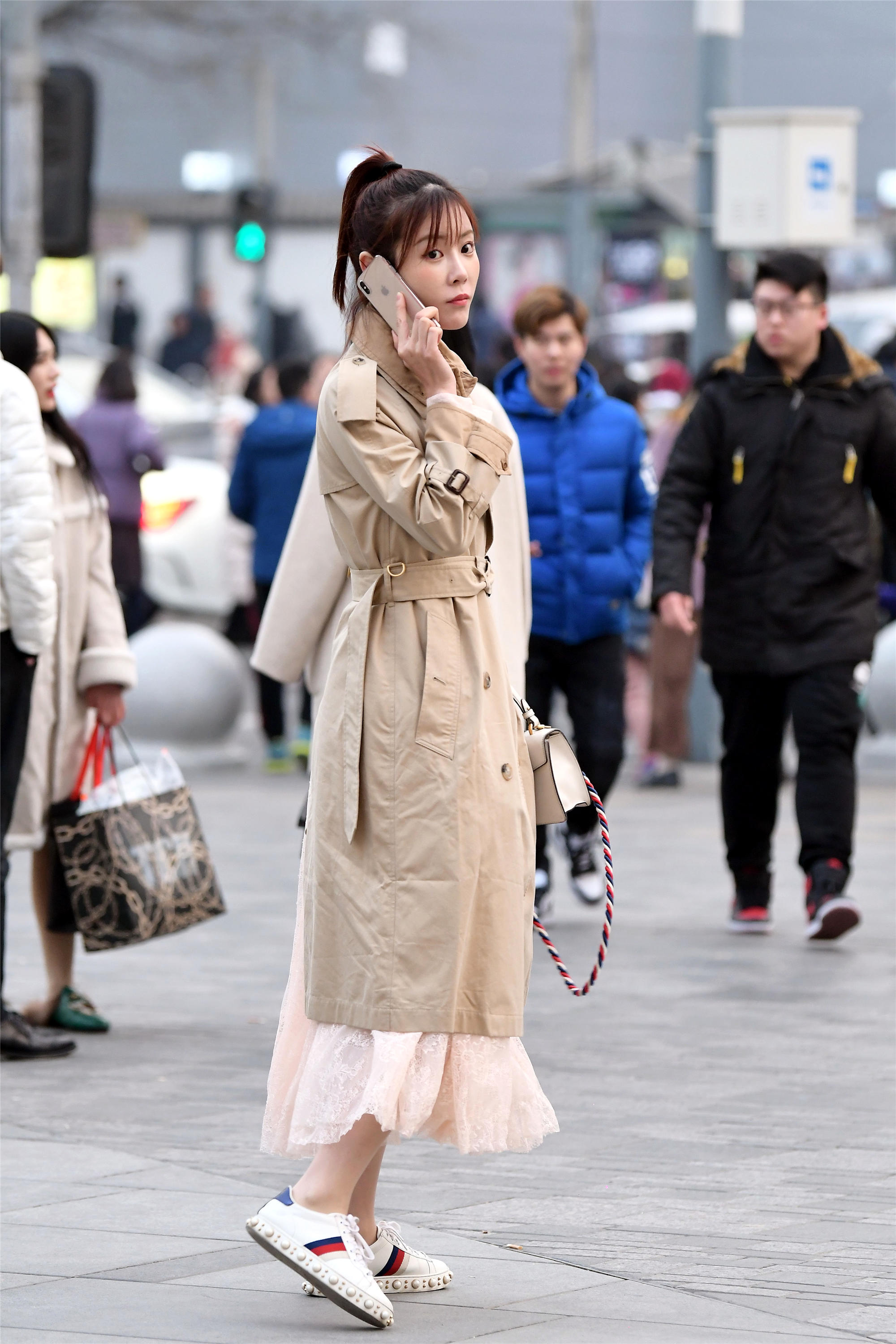 冬天穿搭风衣,也可以搭配的很休闲,当然来这里逛街的姑娘,她们最少也要画一个生活妆,而爱美的姑娘自己都会把自己最美的一面展示出来,所以即使休闲装,也是选了很久才搭配出门的。