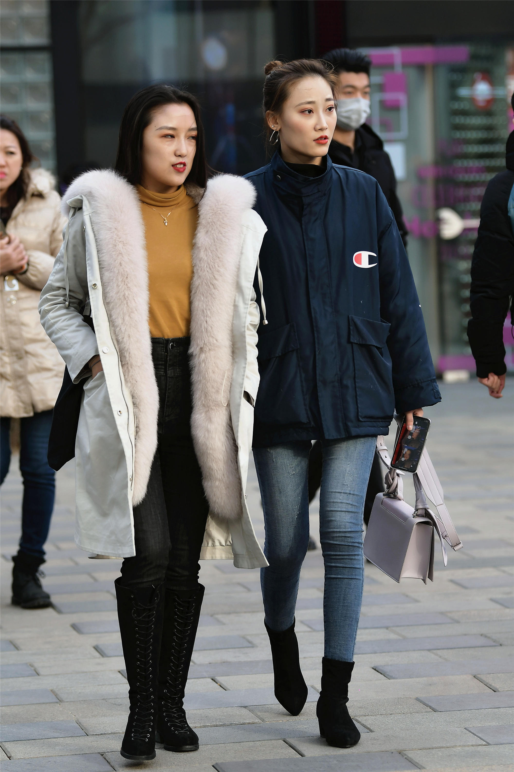 冬日里的搭配,不同人也有着不同的风格,而冬季的服装选择,也是非常丰富的,就像是一对闺蜜逛街,她们的穿搭也会不一样,搭配出属于自己的风格来。