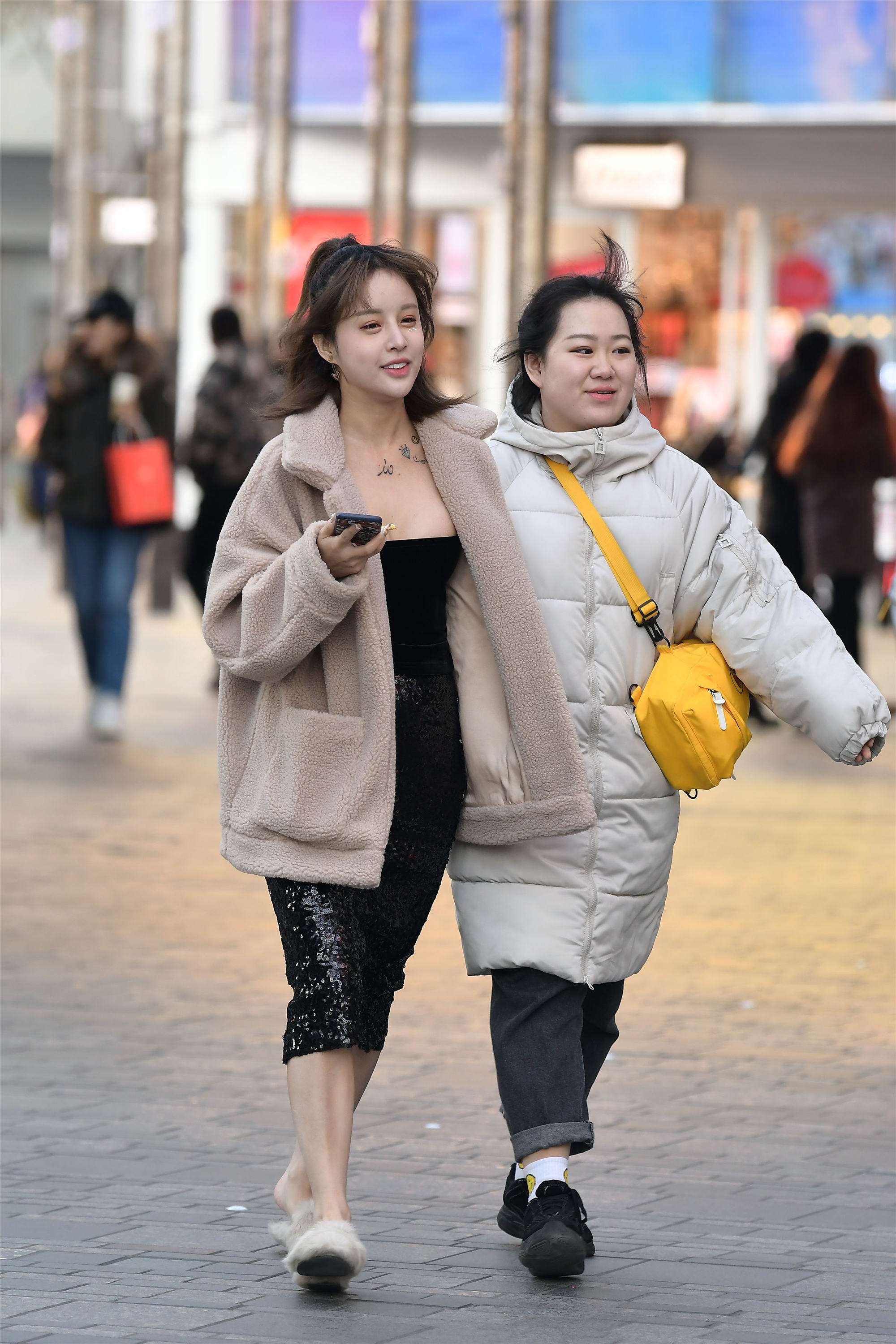 冬天的小姐姐依旧坚持穿着裙子逛街,她们真不怕冻