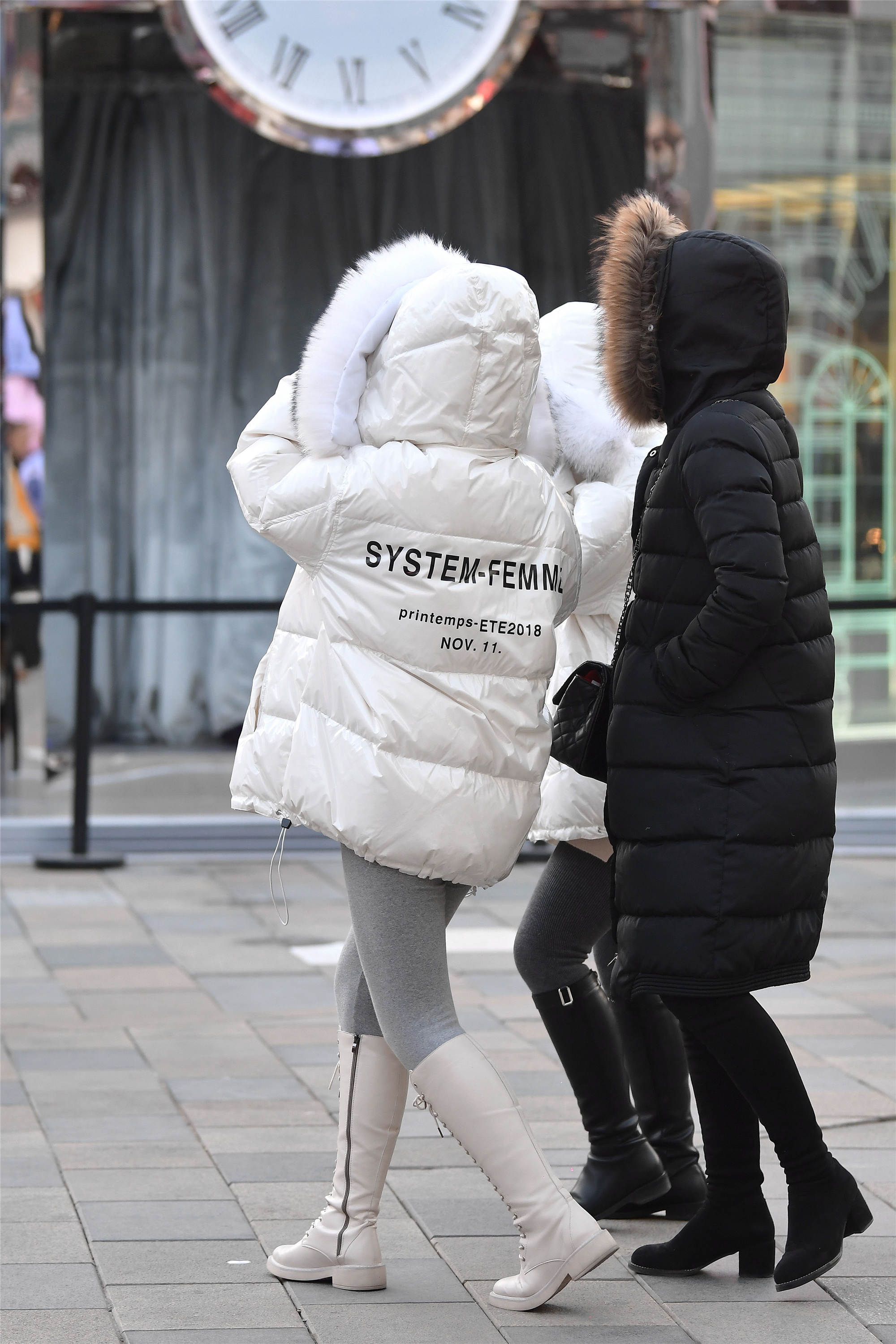 冬天穿羽绒服逛街,是长靴还是短靴的搭配更合适呢?