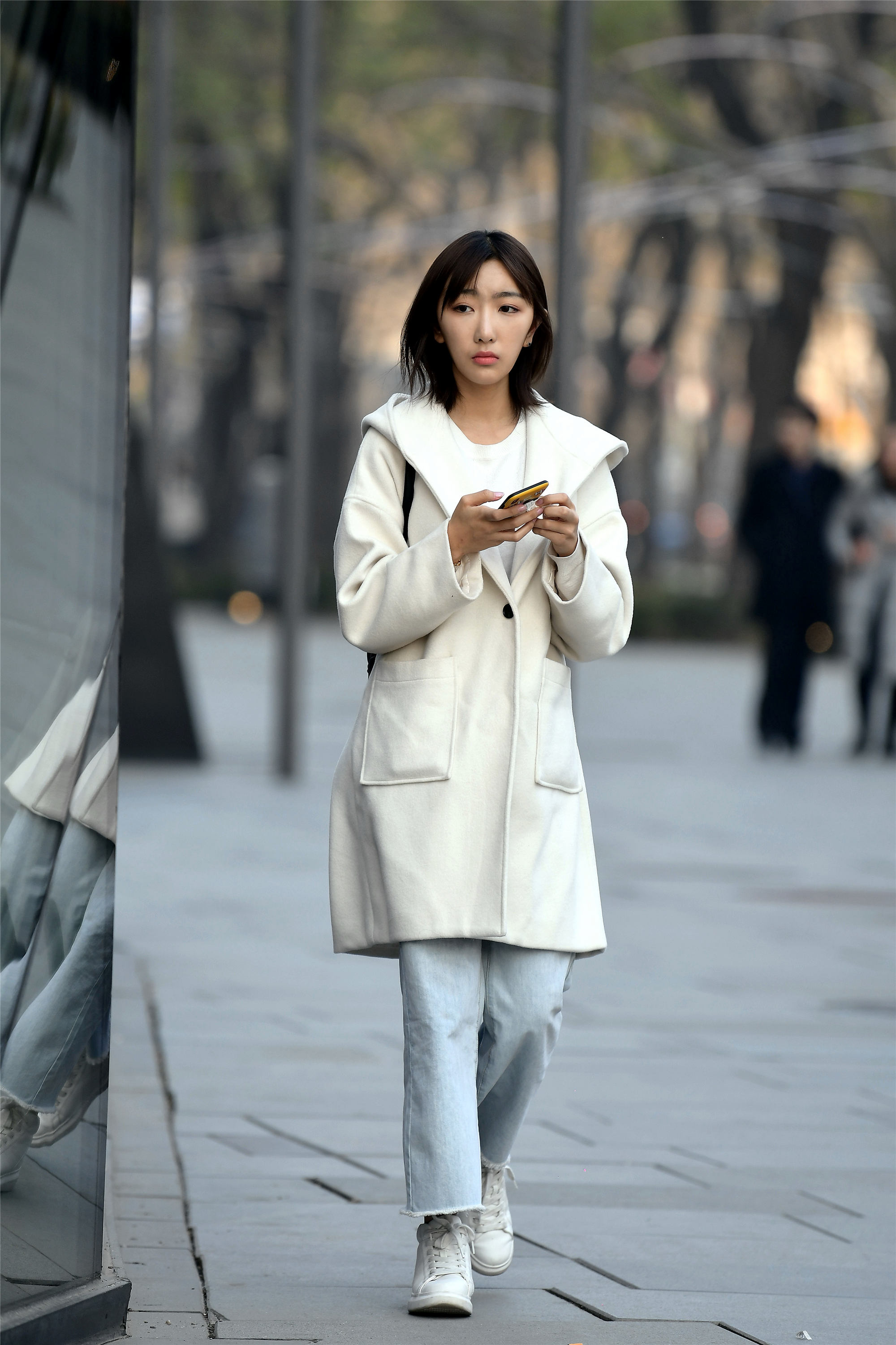 这位小姐姐搭配出一种邻家女孩的感觉,长款的米白色风衣搭配牛仔裤,这样搭配非常减龄效果,而且一双米白色的运动鞋,如果是年轻的女孩,可以选择这样的搭配,过年期间搭配的苏雅一些,也是非常不错的选择,不是每一年过年都要搭配的那种大红大绿的衣服。