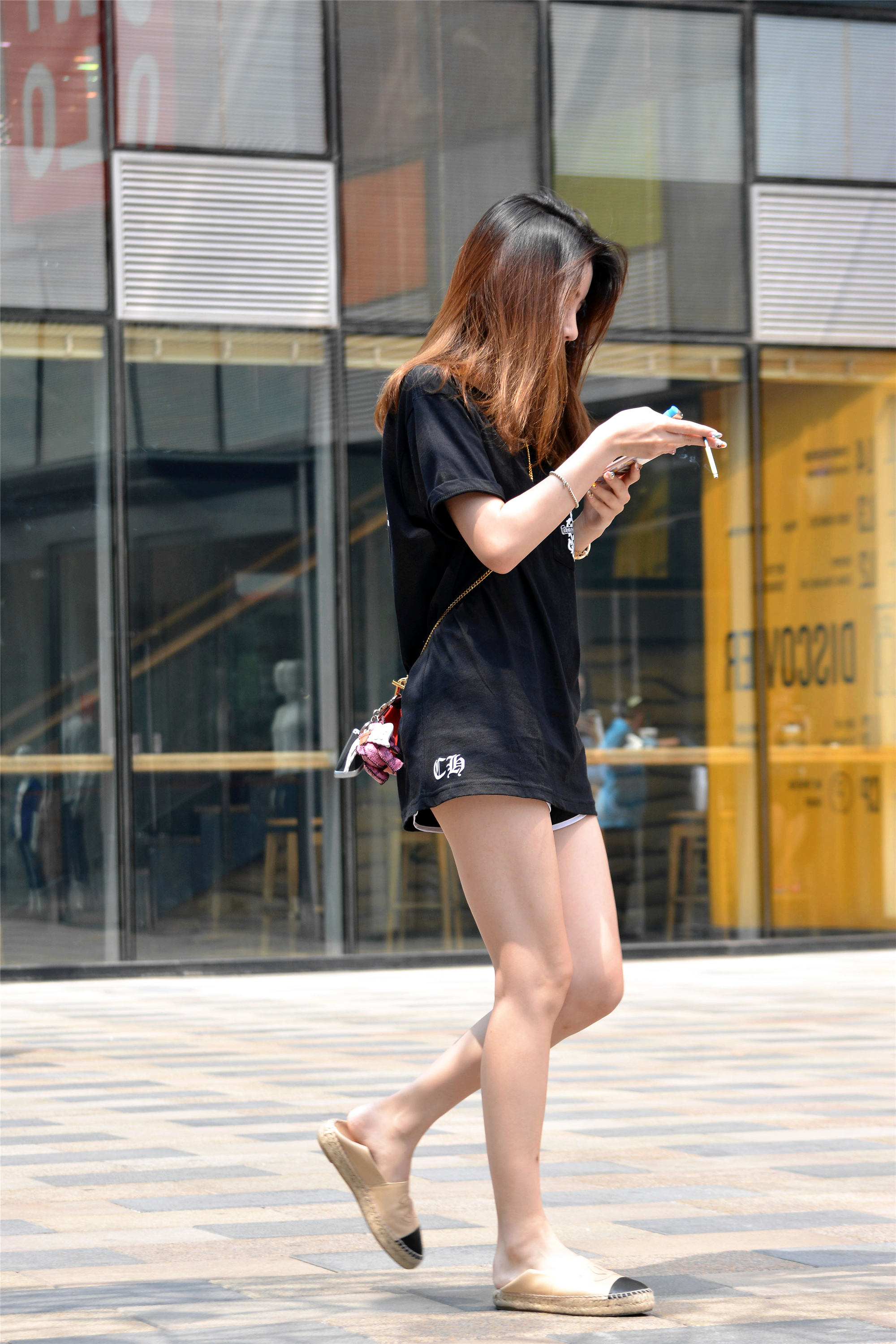 平底的尖头单鞋搭配着一件黑色无袖连衣裙,简简单单的搭配,姑娘知道自己的身材高挑纤细,所以才会这么搭配,而且效果也不错,出门到时尚街区,总觉得要买一点什么才好,所以看到姑娘手里的手拎袋,姑娘这一次出来还是有目的的,买到自己心仪的服装,也是一次不错的逛街过程。越是身材好的姑娘,似乎就约会搭配,简单的衣服在她们身上却显得别有风格,姑娘穿着一条毛边的牛仔短裤,白色半袖被掖在牛仔短裤里面,这样让她的身材更显高挑,而且姑奶给你身材骨感,与服装的宽松,这样的对比更显她骨感味道,一双平底鞋,让逛街更舒适,也可以走更长时间,都不会显得累。