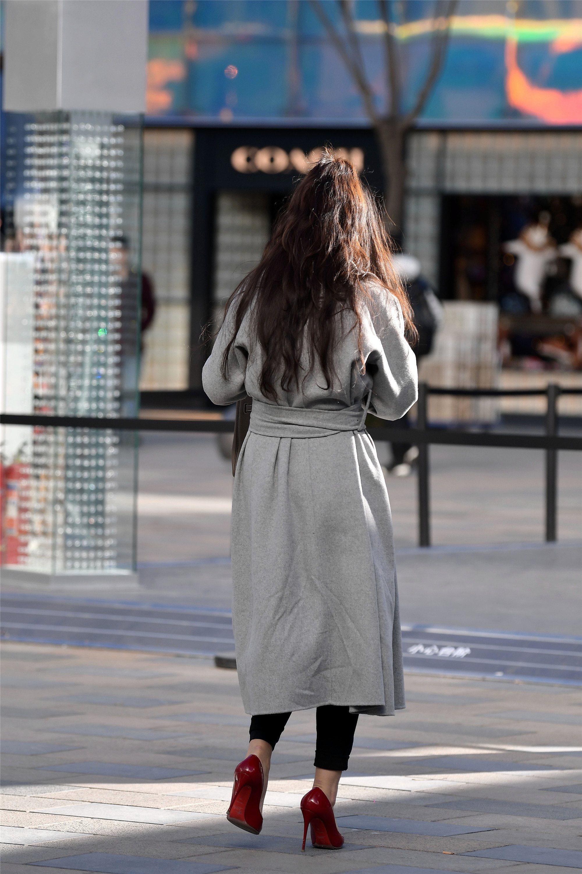 冬天搭配出简约的风格,会更显漂亮,姑奶给你一件灰色风衣,收腰部分非常漂亮,黑色修身九分裤搭配一双红色尖头细跟鞋,让她身材看起来更加高挑,而且穿着这双高跟鞋,走路还显得分成优雅,而且还留着长发,似乎漂亮的姑娘,都喜欢留着长发。