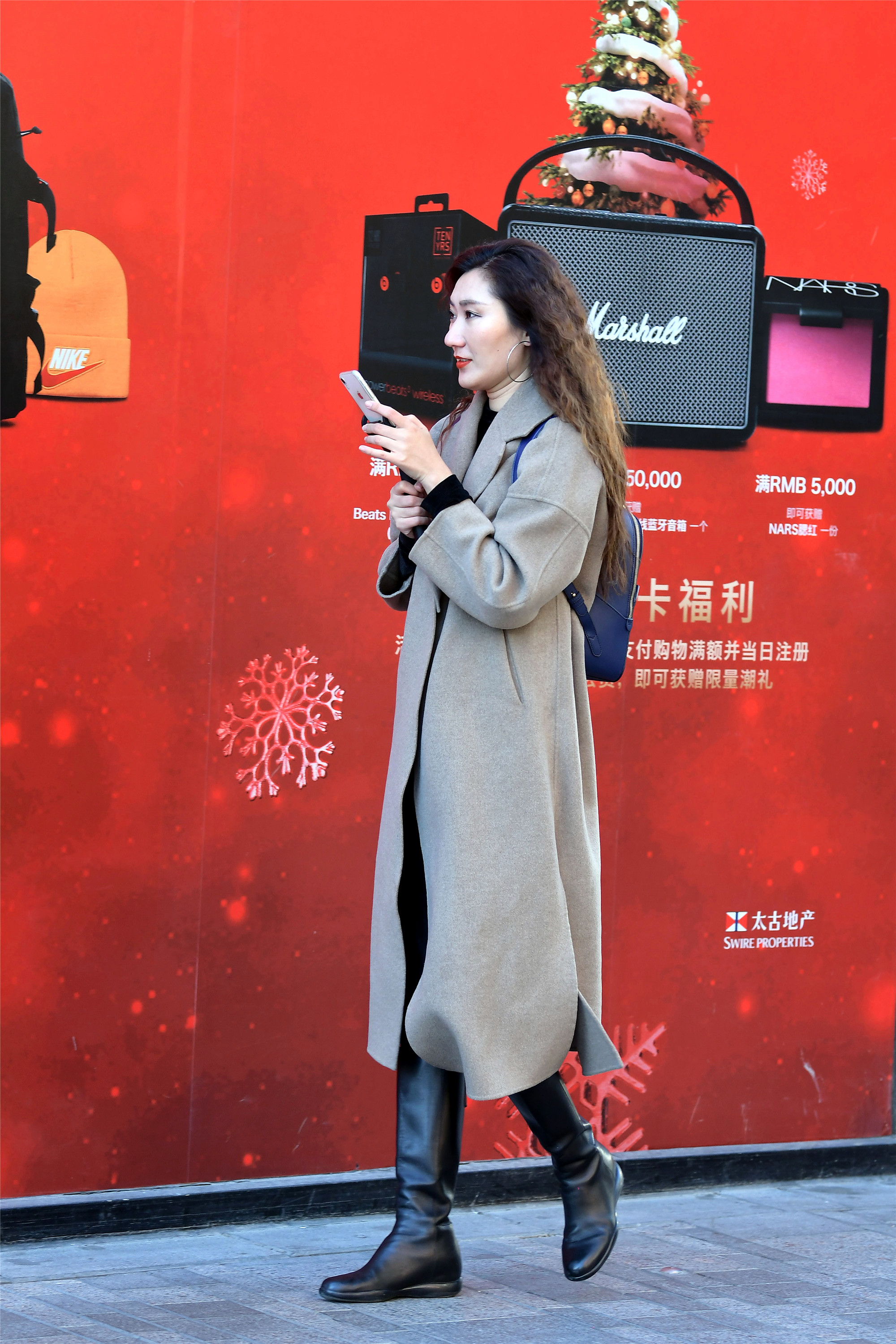 看一下这位姐姐,身材高挑就穿着长款的风衣,浅灰色风衣搭配黑色皮靴,非常简单的搭配,很多人都可以这样搭配出门,如果想冬天出门逛街,可以这样简单的衣服,搭配出非常不错的效果,不用为了搭配而烦恼了。