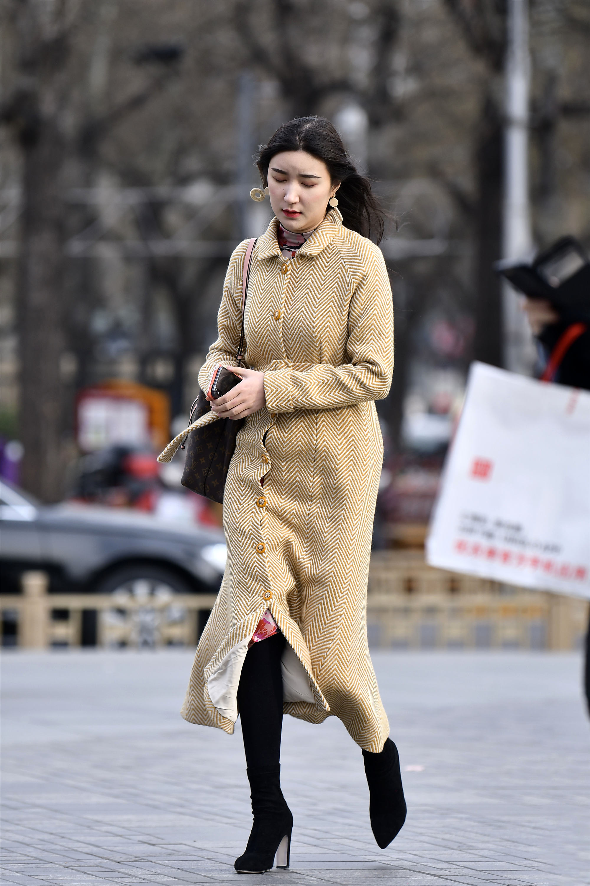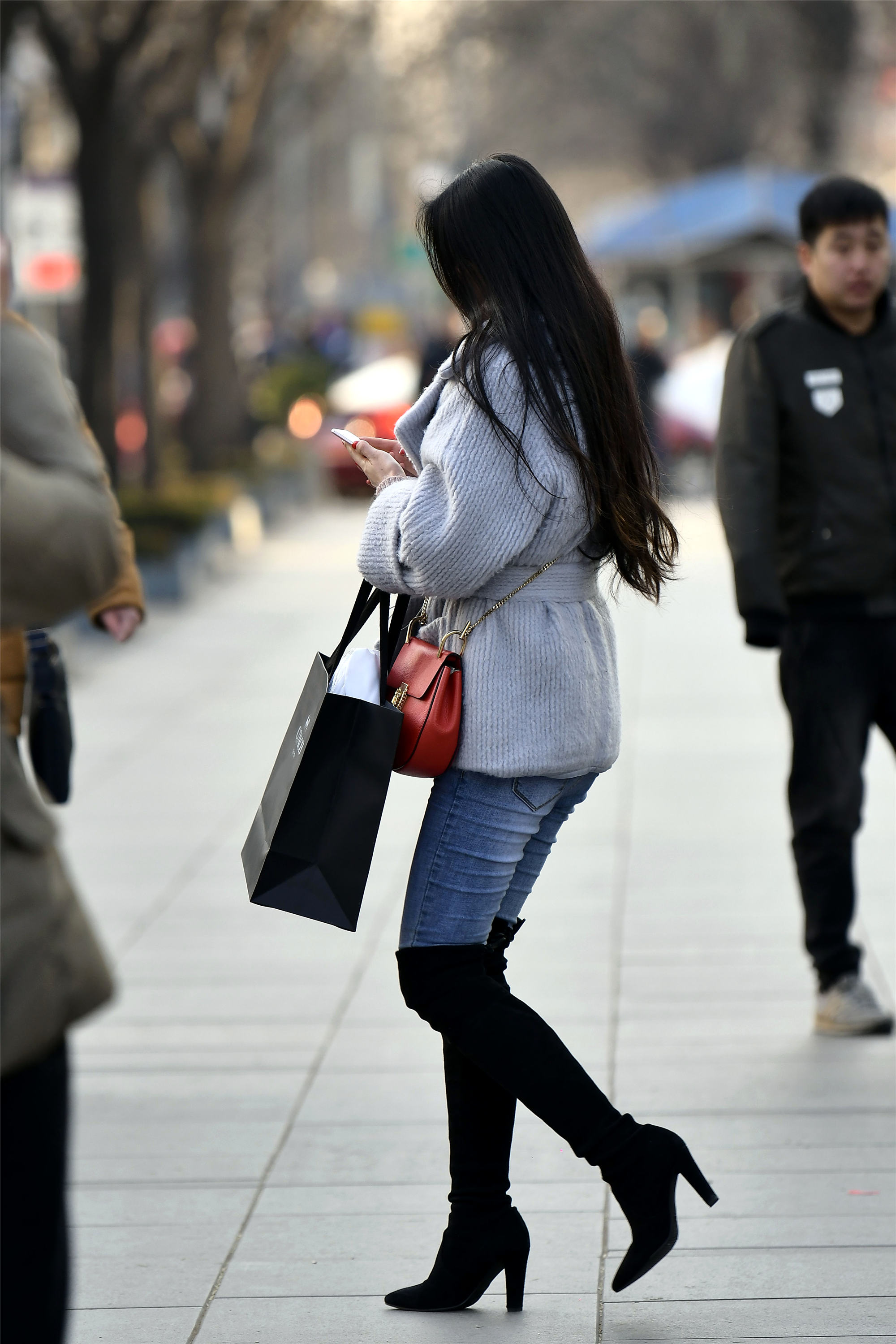 冬天要想穿的漂亮,有层次,也不是特别的难,选对衣服,大部分姑娘都可以很好的展示自己,其实很多姑娘身材都很不错,只要搭配漂亮了,在冬天依旧可以展示自己的风采,看一下这位小姐姐,蓝色牛仔裤搭配着黑色过膝靴,尖头粗跟款式让她看起来更加高挑,条绒的上衣,一条宽腰带,让她看起来身材更显高挑,而且走路姿态还这样的优雅。