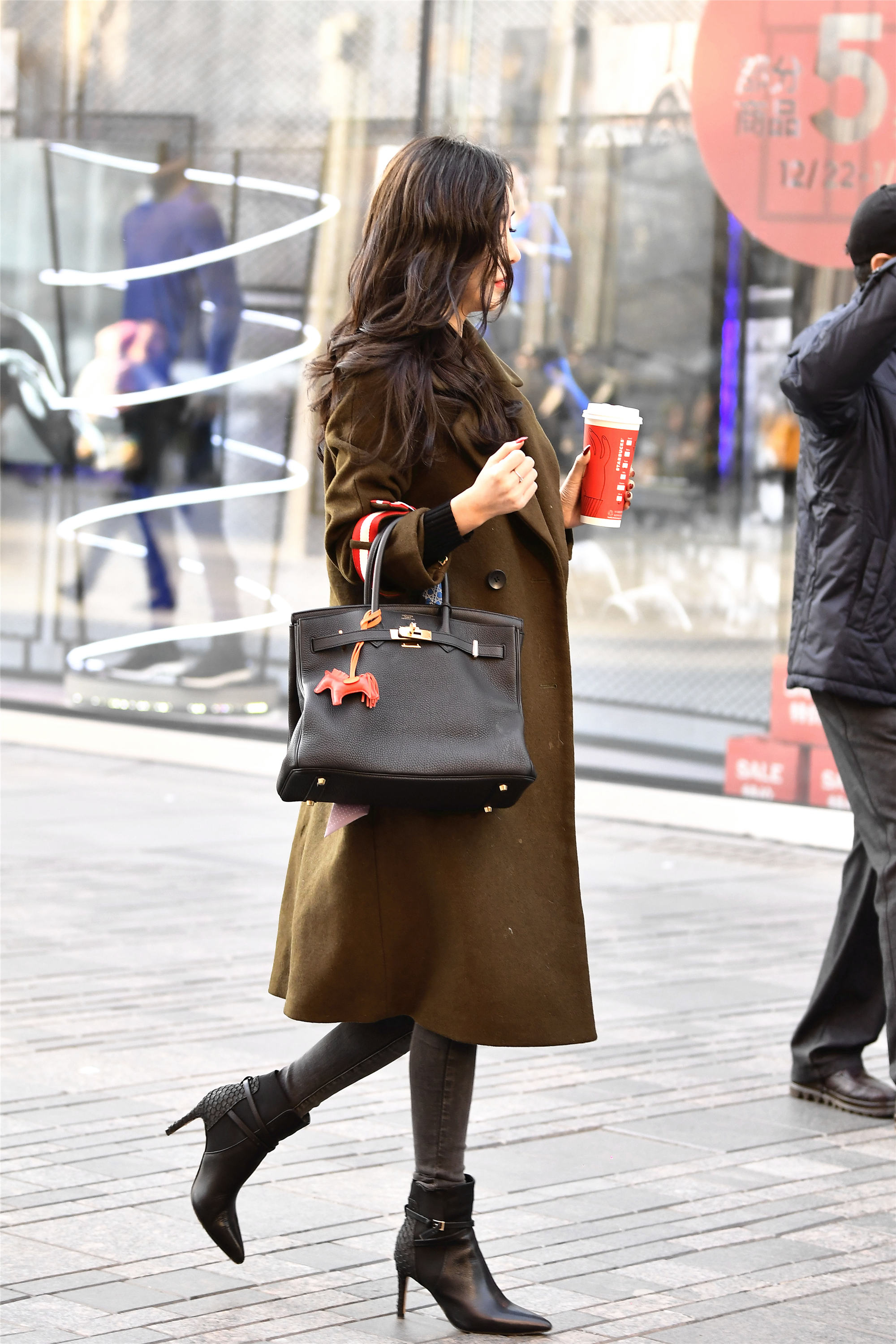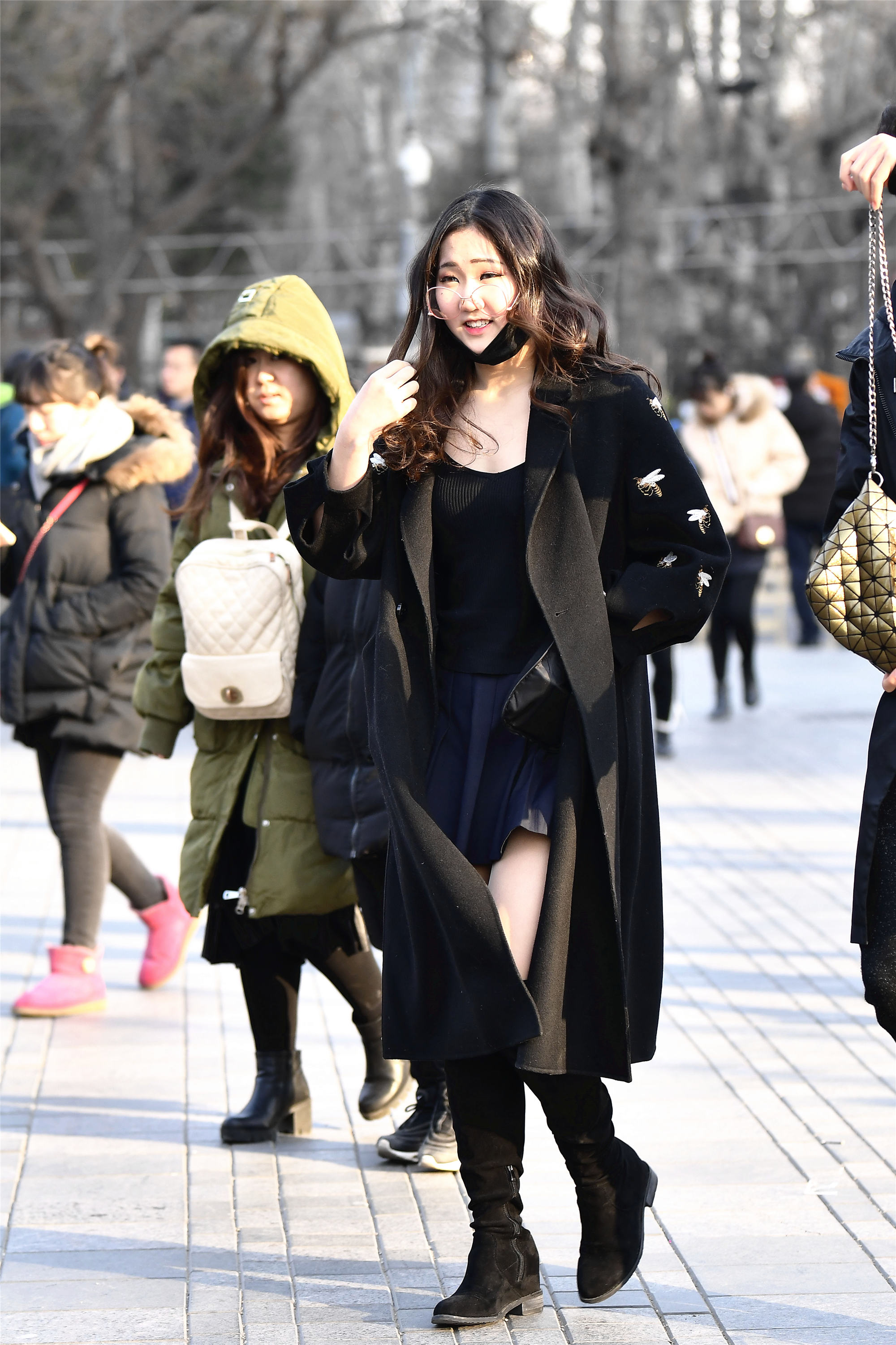 冬天如果不是很会搭配,对自己身材也不是特别满意,可以尝试以下大衣的风格,长款的大衣,毛呢面料抗风,也有很好的保暖效果,选择简约修身的款式,可以搭配出很好的效果,看一下这位姑娘,深色大衣,搭配黑色牛仔短裤,一双尖头细跟短靴简约修身的款式,后跟是鱼鳞皮面,非常有层次感,细跟也不是很好,鞋子弧度特别漂亮,而且这样的搭配也非常显瘦的效果。