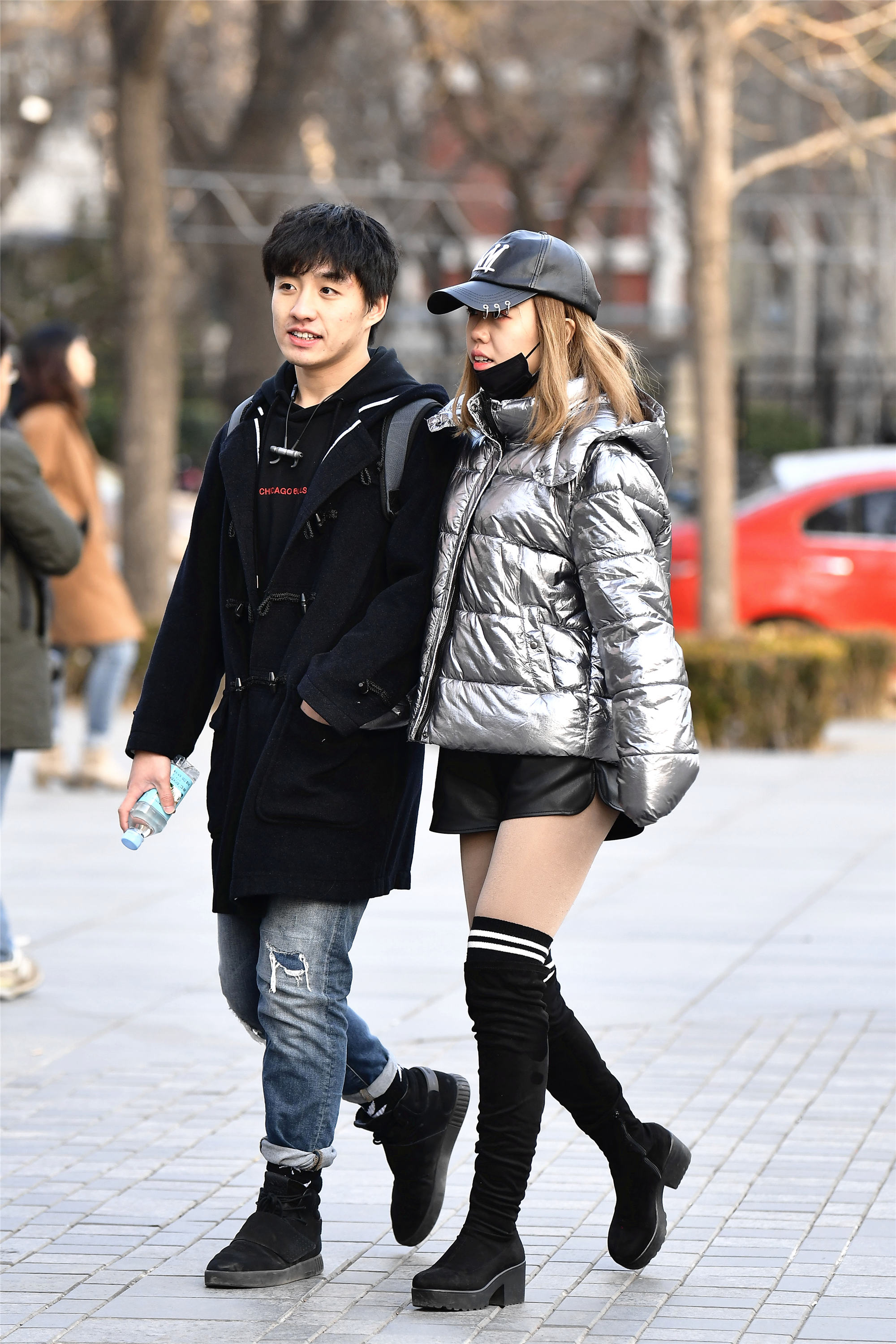 冬天穿着羽绒服,是很不错的选择,短款的羽绒服,可以搭配出非常不错的层次感觉,看一下这位小姐姐,她的搭配非常有层次,金属铅色的短款羽绒服,搭配皮短裤,裸色的厚丝袜非常不错,一双过膝靴,里面还搭配着一双球袜,这样的穿搭,层次很多,却也不显胖,还展现小姐姐修长的身材。一身黑色搭配,在冬天似乎是很不错的选择,很多人愿意在冬天搭配深色系,这位姑娘,她是黑色皮草短款上衣,黑色厚丝袜搭配一双黑色尖头细跟短靴,将姑娘骨感身材展现的特别好,而且冬天搭配着尖头细跟鞋,非常漂亮,冬天里不怕冷的姑娘,可以搭配出很不错的效果,也特别期待那些不怕冷的姑娘出来逛街。