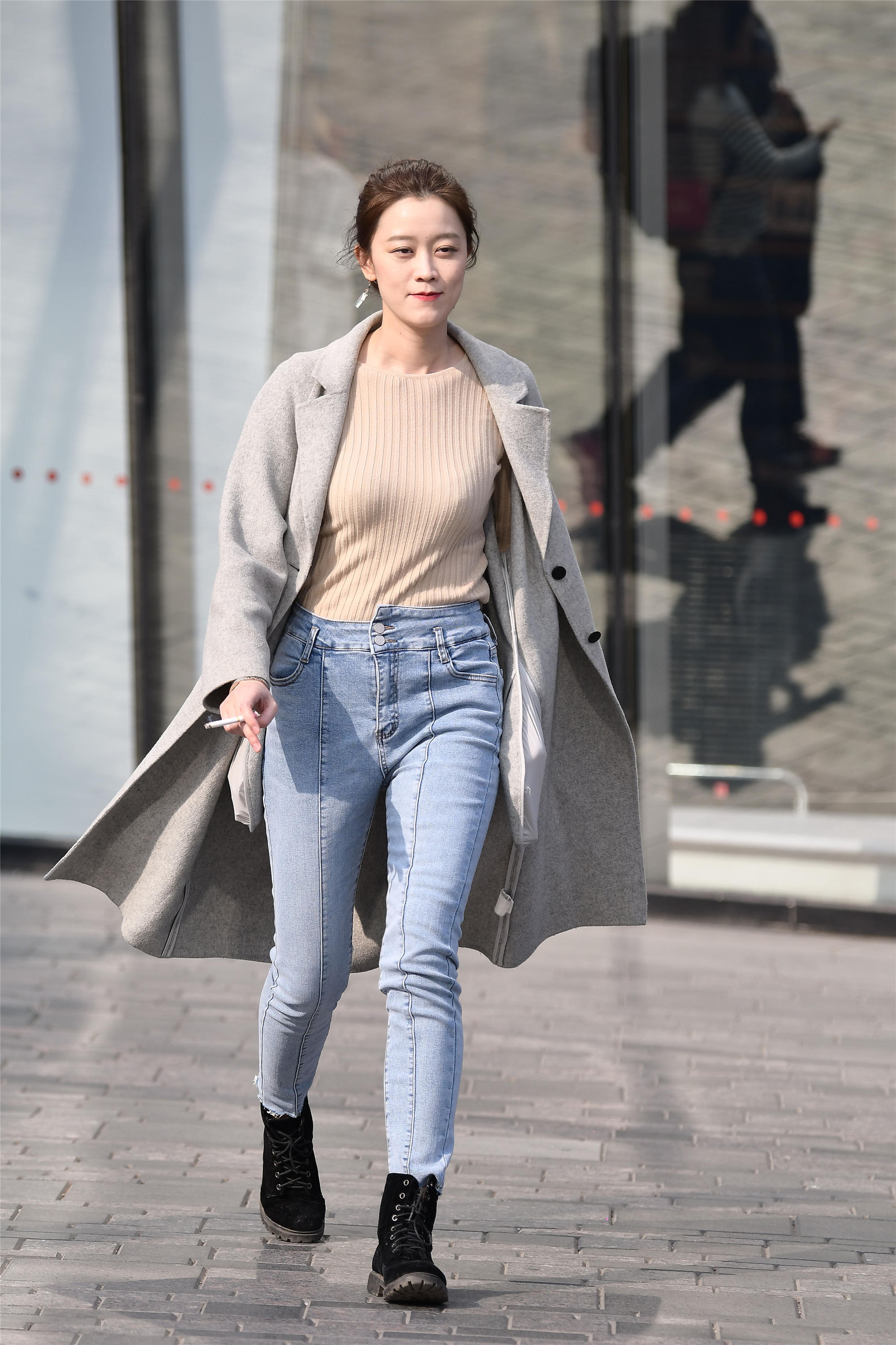 很多人喜欢春天,是因为可以搭配风衣,她们喜欢穿着风衣出行,一位可以搭配出风度的感觉来,看一下这位小姐姐,浅灰色的风衣,在她走路的时候,衣摆飘在后面,觉得特别有风度,一身休闲的穿搭,就是去享受逛街的乐趣来了,肉色针织衬衣,下摆掖在蓝色牛仔裤腰里面,修身的牛仔裤让她身材比例看起来更好一些,一双黑色马丁短靴,让色彩有了变化。