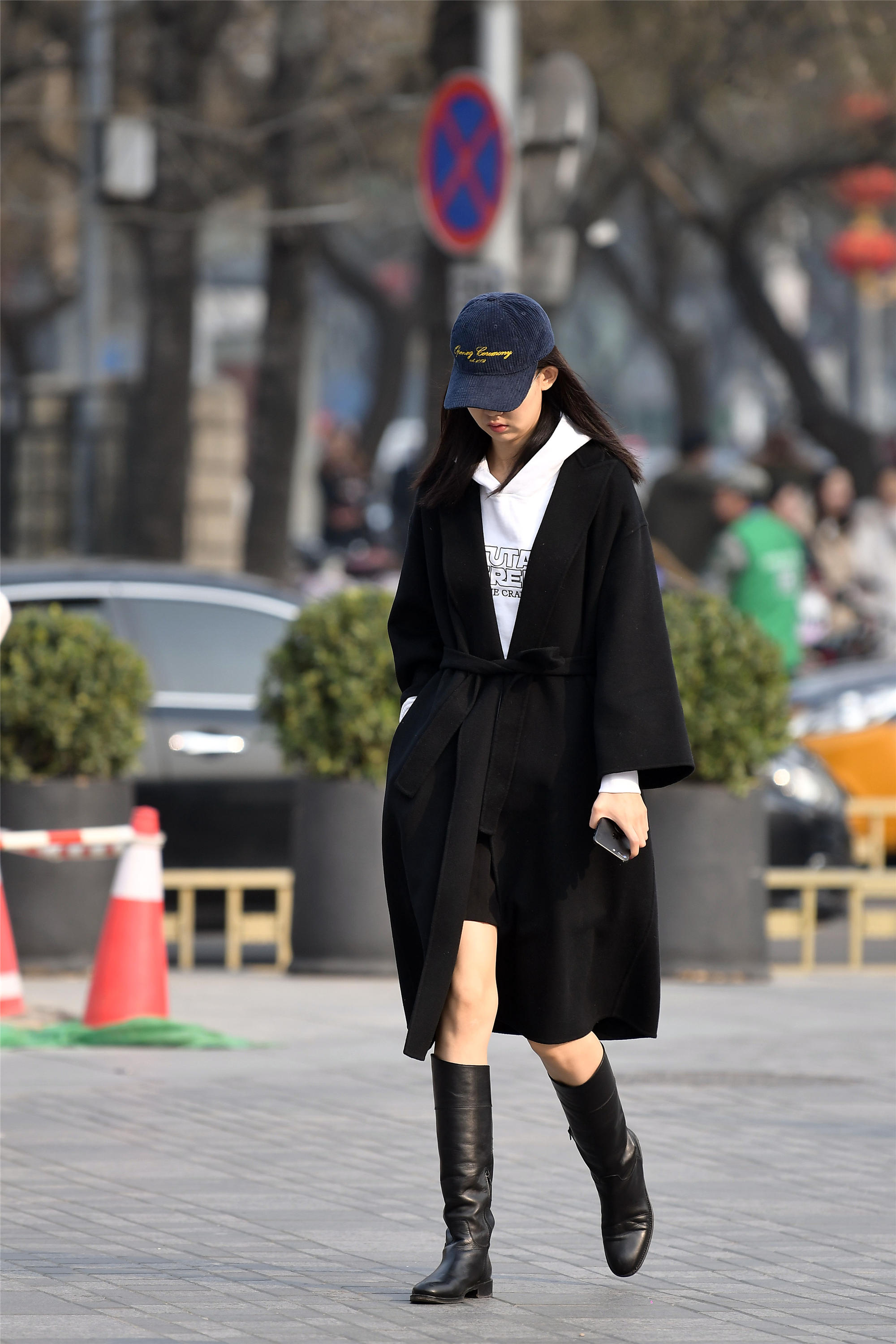 在春天,展示自己的搭配,是一件很好的事情,会搭配的姑娘,也更喜欢出来逛街,看着她们的搭配非常精彩,这位小姐姐身材高挑,有很会搭配,一件黑色风衣,腰带系起来,这样会显出腰身,白色的卫衣与黑色风衣,形成经典的黑白色系搭配,在走路的时候,膝盖部不是的露出来,一双黑色皮靴,靴筒不是很高,却非常漂亮,姑娘戴着一顶鸭舌帽,把自己的脸部遮住,虽然只看到一点点,但是依旧感觉到很美。