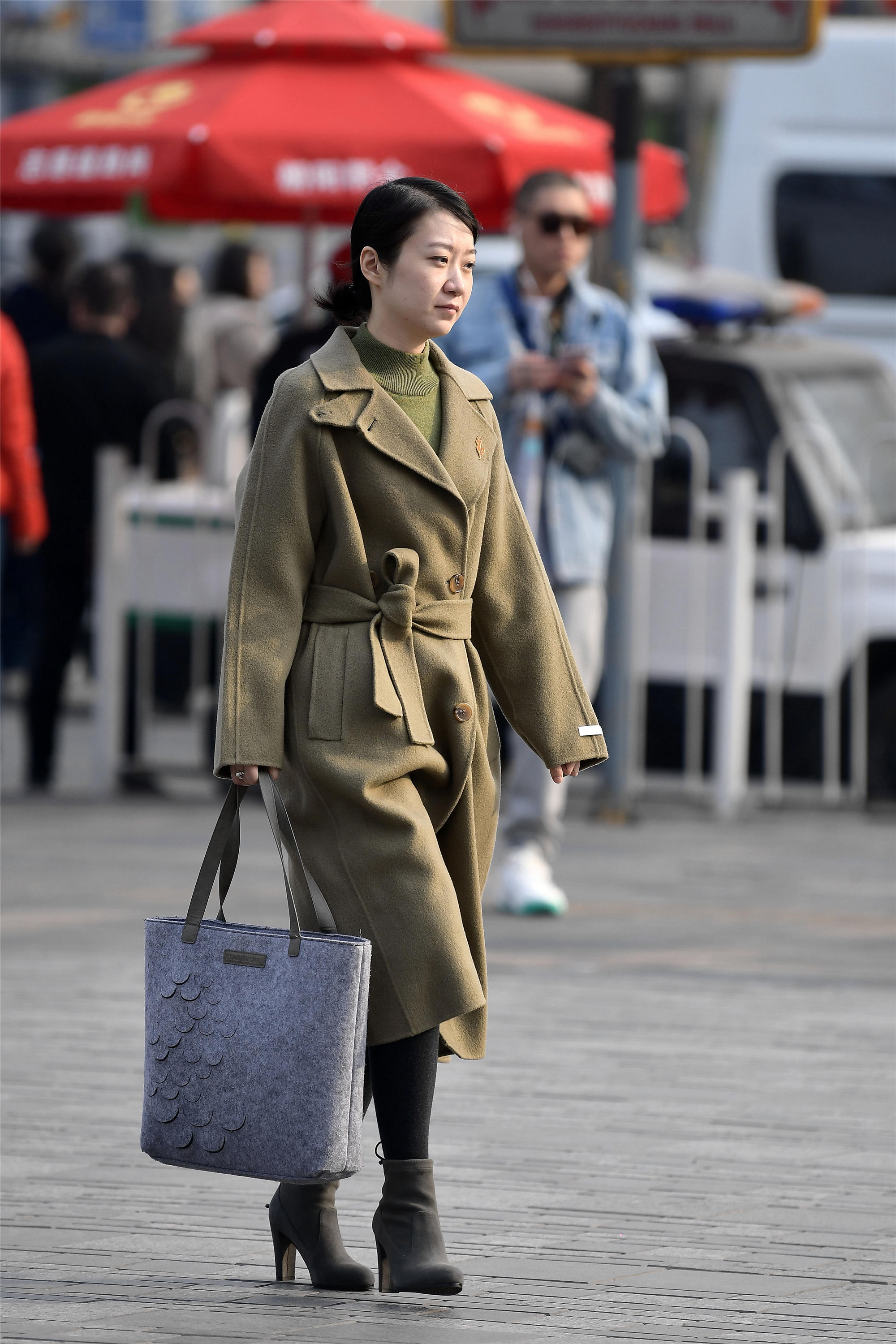 风衣春天怎么穿,和那些衣服组合?每一位姑娘的衣橱里面都不一样,所以搭配出来的效果也会有很大的不同,对于色彩,每个人也有着自己的喜欢,看一下她的风衣,黄绿色的低调风格,搭配一件高领的针织衫,风衣不仅系这口子,也包腰带系起来,挽一个漂亮的节,拉长身材比例,搭配一双深灰色的粗跟短靴,手里拎着一个灰色的大拎包,很难忽视这款手拎包。