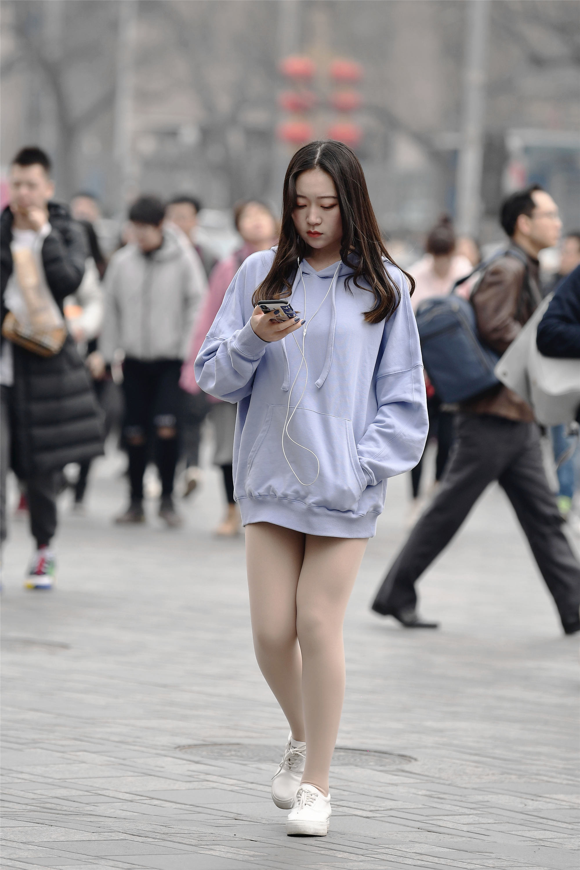 春天是一个很好搭配的季节,怎么搭配出自己喜欢的感觉,也让别人认可,其实也不是很难,如果平时多注意搭配,多学习穿搭技巧,也会轻松搭配出个性的春装,看一下这位小姑娘,她的搭配有着很好的减龄效果,浅蓝色的帽衫,很长的衣襟,这样简单一件衣服,就可以搭配出很不错的效果,其实她还搭配一条肉色丝袜,修身又显身材,搭配一双白色平底靴,更显小女生的感觉。