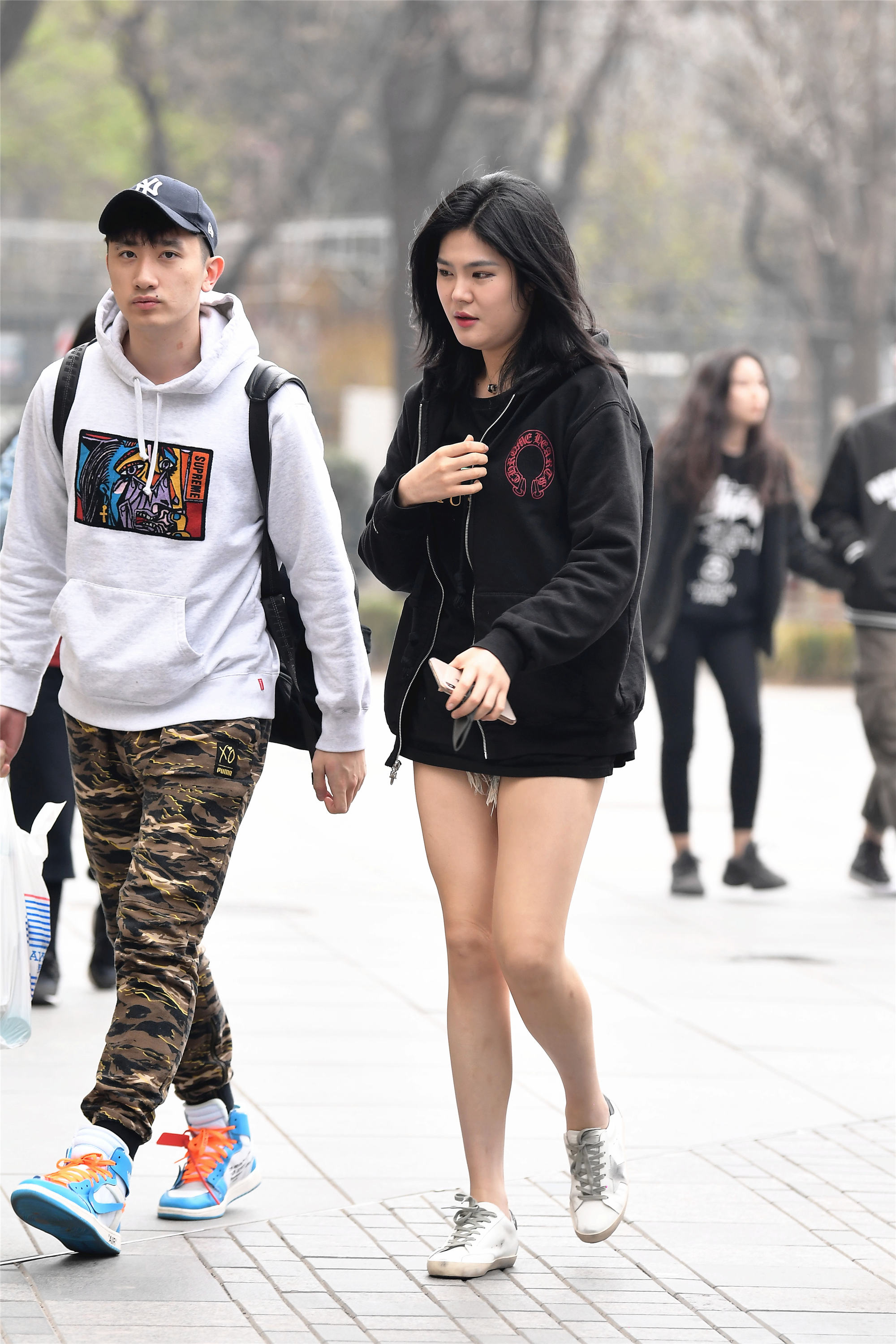 其实在春季,很多时尚姑娘喜欢穿着帽衫,保暖还有个性,也可以搭配出不同的风格,主要还是减龄的效果,轻松让你年轻10岁的感觉,这位姑娘选择一件黑色帽衫,黑色短裤搭配一双过膝长靴,纤细的靴筒,显得人很瘦,粗高跟,走路会更稳,长发随风飘起,显得特别的时尚漂亮。