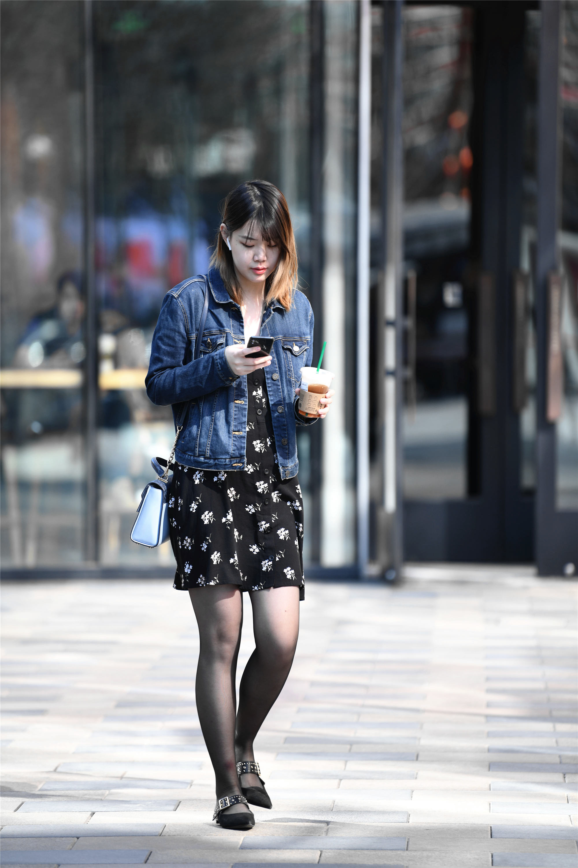 会搭配的姑娘,都很了解自己的身形,通过搭配,展示自己最美的一面,这位小姐姐身材稍微有些胖,所以选择的搭配也是松紧相结合的,搭配出来的效果也是非常好看的,蓝色短款的牛仔服,会有着很好的显身材比例的效果,一条黑色宽松的连衣裙,上面的白色印花增加层次感,黑色丝袜,有着很好的收紧效果,这样腿型很很美,一双尖头平底鞋,鞋面上的卡扣设计发,非常个性,要是换一双黑色高跟鞋,会更显身材高挑。