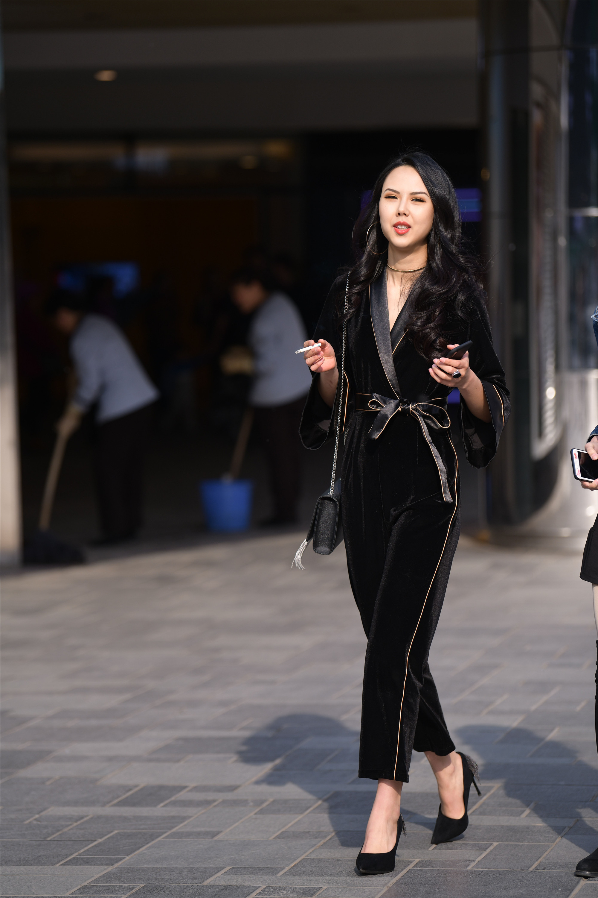 连衣裤,也可以在春天搭配出来,会有着很不错的显瘦效果,这位姑娘一身黑色绒面连衣裤,腰间系一个蝴蝶结得腰带,让她的身材比例看起来更加好看,而且显瘦的效果很明显,上面的V领设计,非常时尚,裤脚九分长度,为了更好的展示脚下的尖头细跟单鞋,也是选择黑色来搭配,让你感觉,一身简约的黑色,也可以搭配得很时尚,喜欢搭配的姑娘,她们可以驾驭很多色彩。