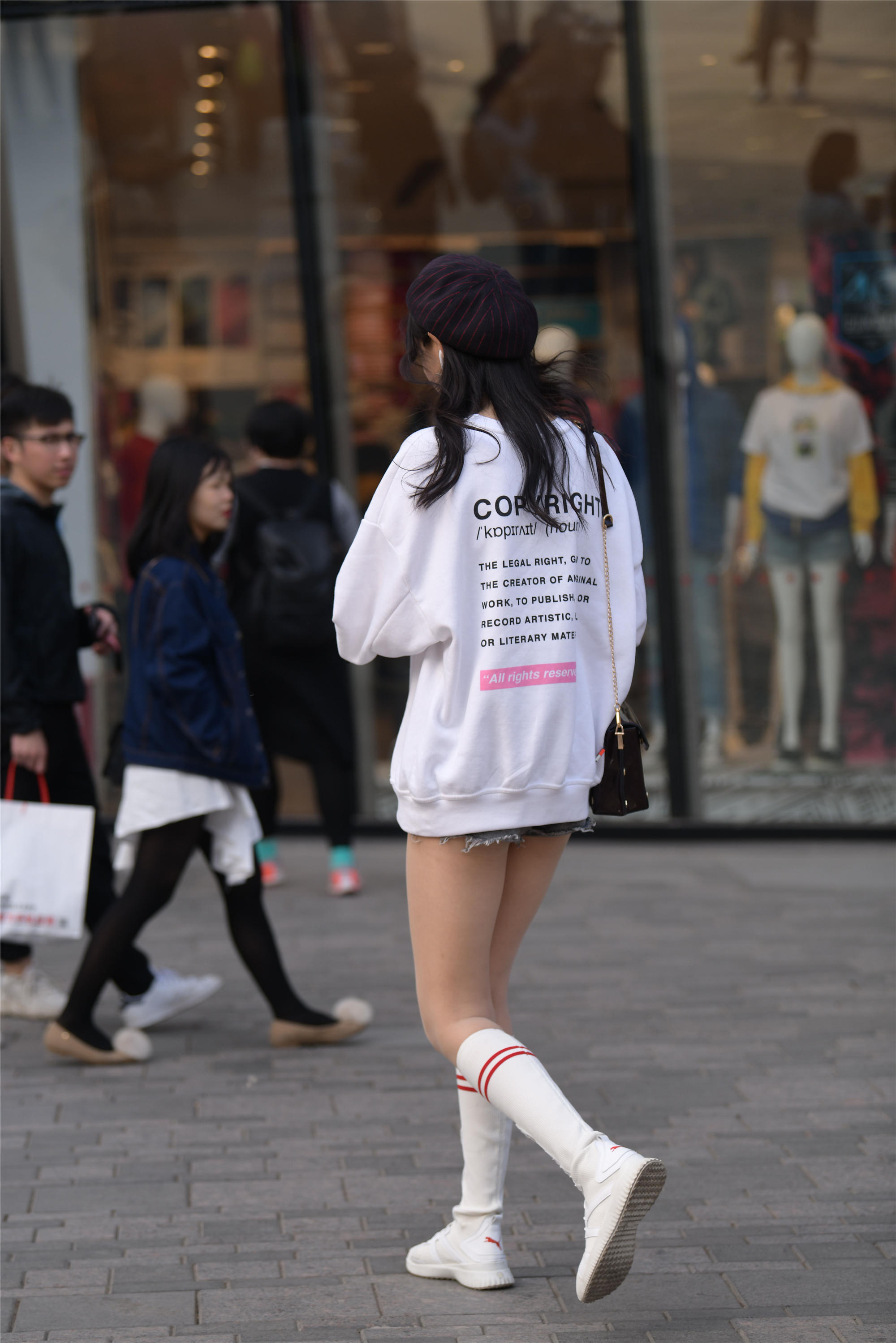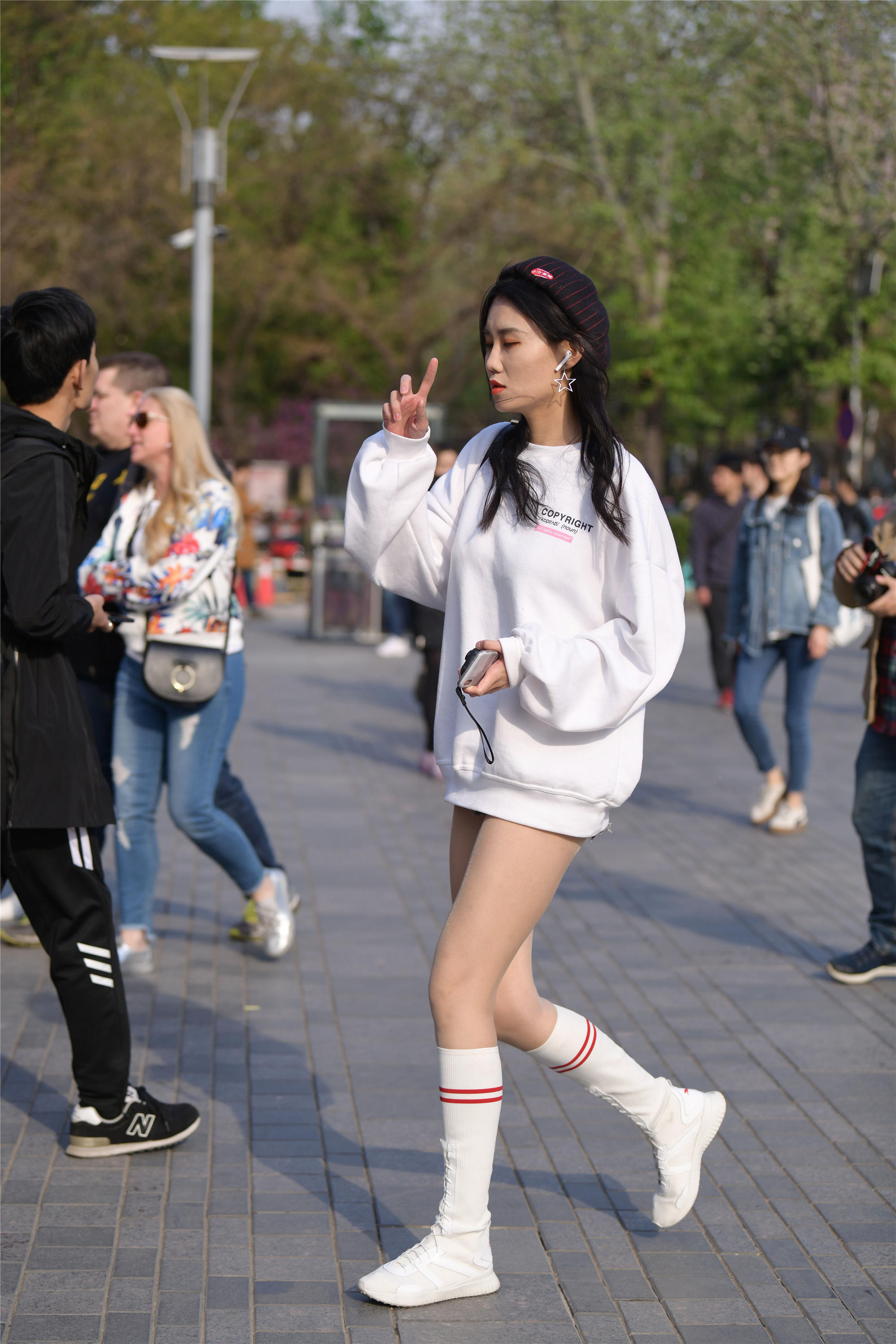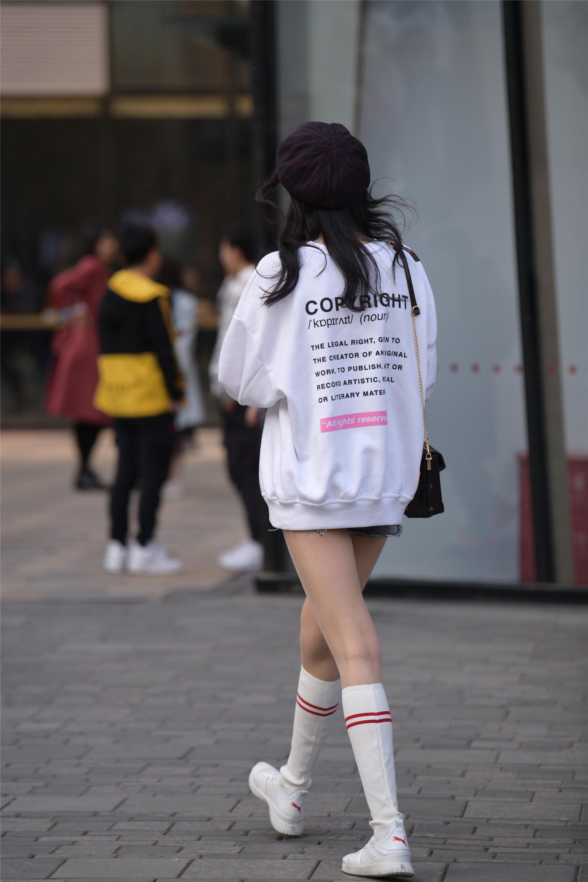 春天穿着卫衣逛街,却被美女搭配出大长腿的效果,太会穿了