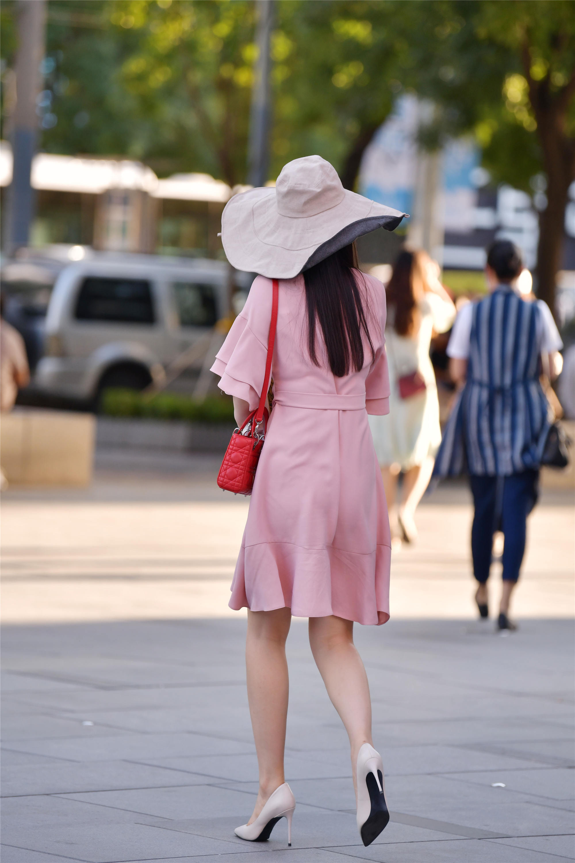 一双漂亮的高跟鞋,会提升气质,而且很多姑娘选择的高跟鞋,也都是很百搭的,这样可以和很多衣服搭配一下,这位美女选择一款浅粉色的连衣裙,身材看起来有点微胖,所以选择半袖的款式,这样会有着很好的藏肉效果,一顶帽檐很大的帽子,增加个性,帽檐翘起来,增加个性,脚下一双浅灰色的尖头细跟鞋,10公分的高度,可以让身材更加凸显,如果是可以轻松驾驭高跟鞋的姑娘,还是选择这款高跟鞋,比较好看,更显身材。