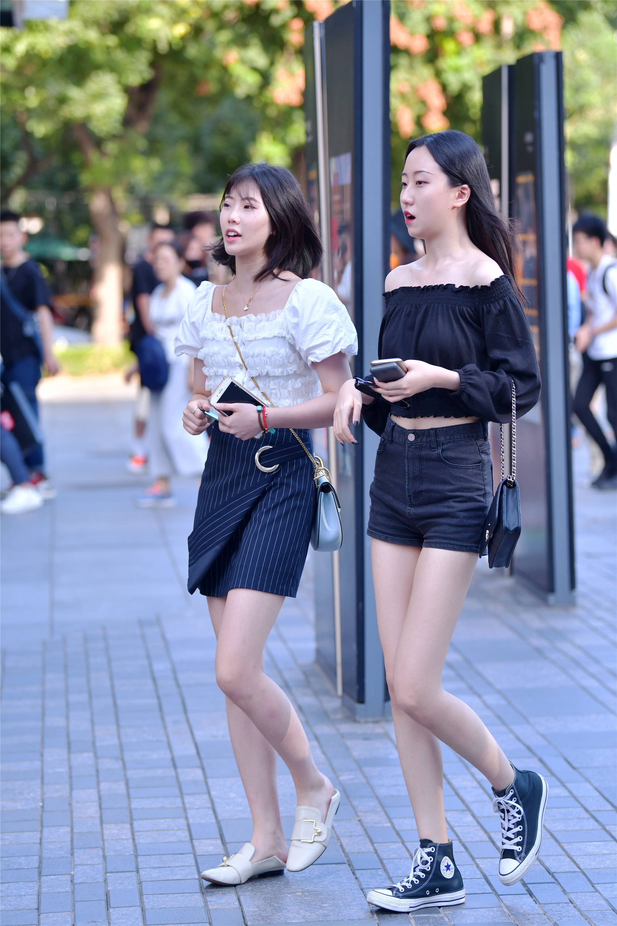 很多时尚的姑娘都喜欢逛街,很多人也不知有一个闺蜜,你会约谁一起逛街呢?在初秋时节,你会怎么搭配自己,这一对闺蜜,短裤搭配一字肩,露出一点腹部,这样穿显得身材很好,也搭配出比例效果,脚下的帆布鞋,显得休闲,还有年轻的效果,她的闺蜜是高腰筒裙,搭配白色松紧小衫,非常蓬松的效果,搭配一双浅灰色的皮鞋,有点正式的搭配效果。