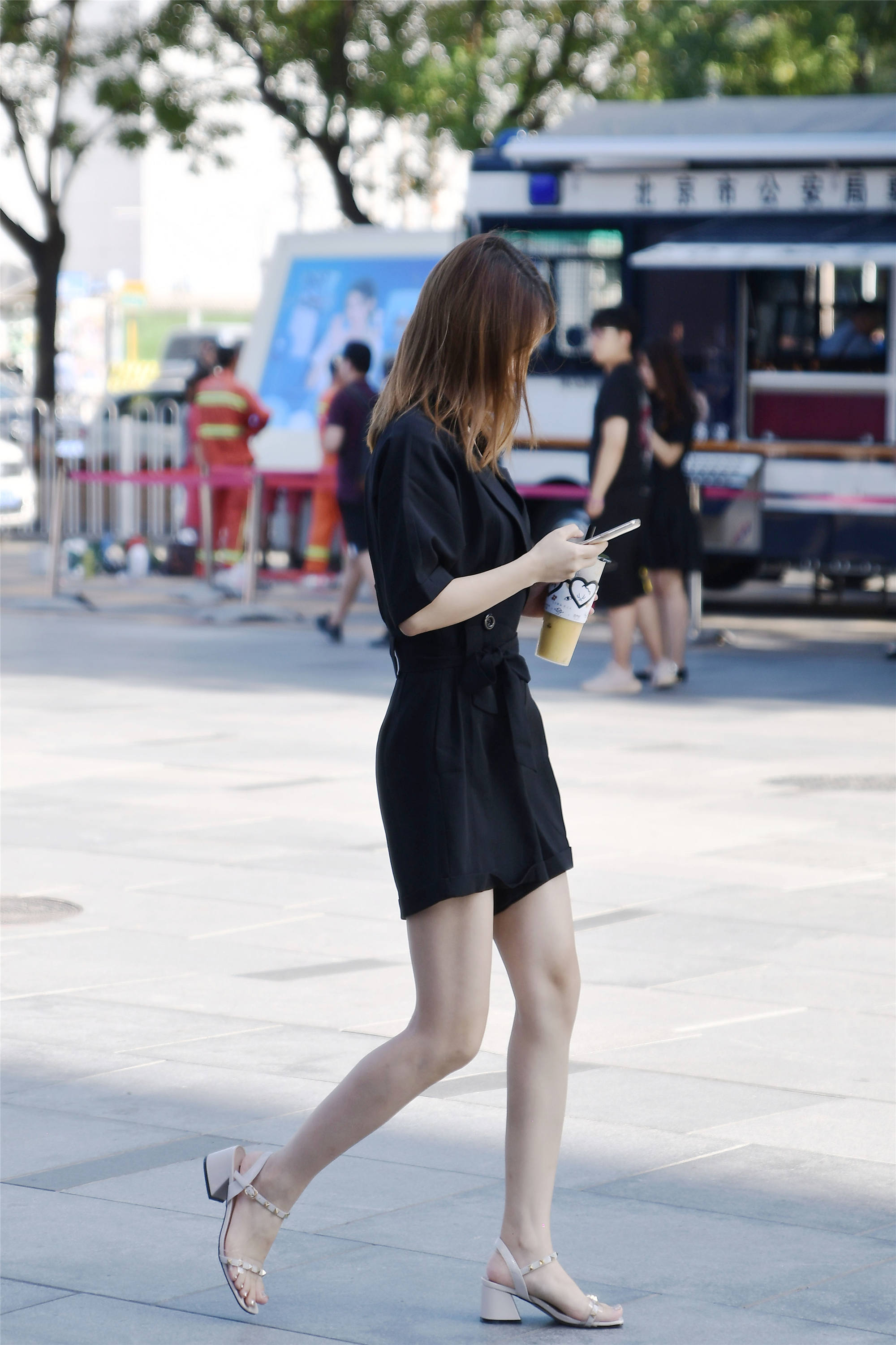 很多人选择连衣裙,不都是那种清凉的薄款面料,有时候会有点风格类型的面料,在初秋时节搭配,也不会太热,这位美女选择黑色的连衣短裙,半袖款式,腰间还有腰带这几,增加装饰效果,也突出身材比例的味道,面料看着厚实,非常适合初秋时节穿搭,脚下一双粗跟凉鞋,这也是过夏天的感觉,展现出夏秋之交的时节搭配。