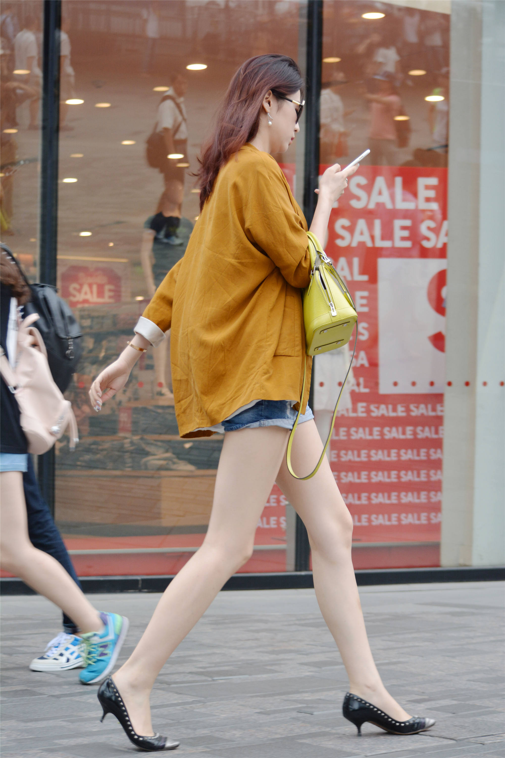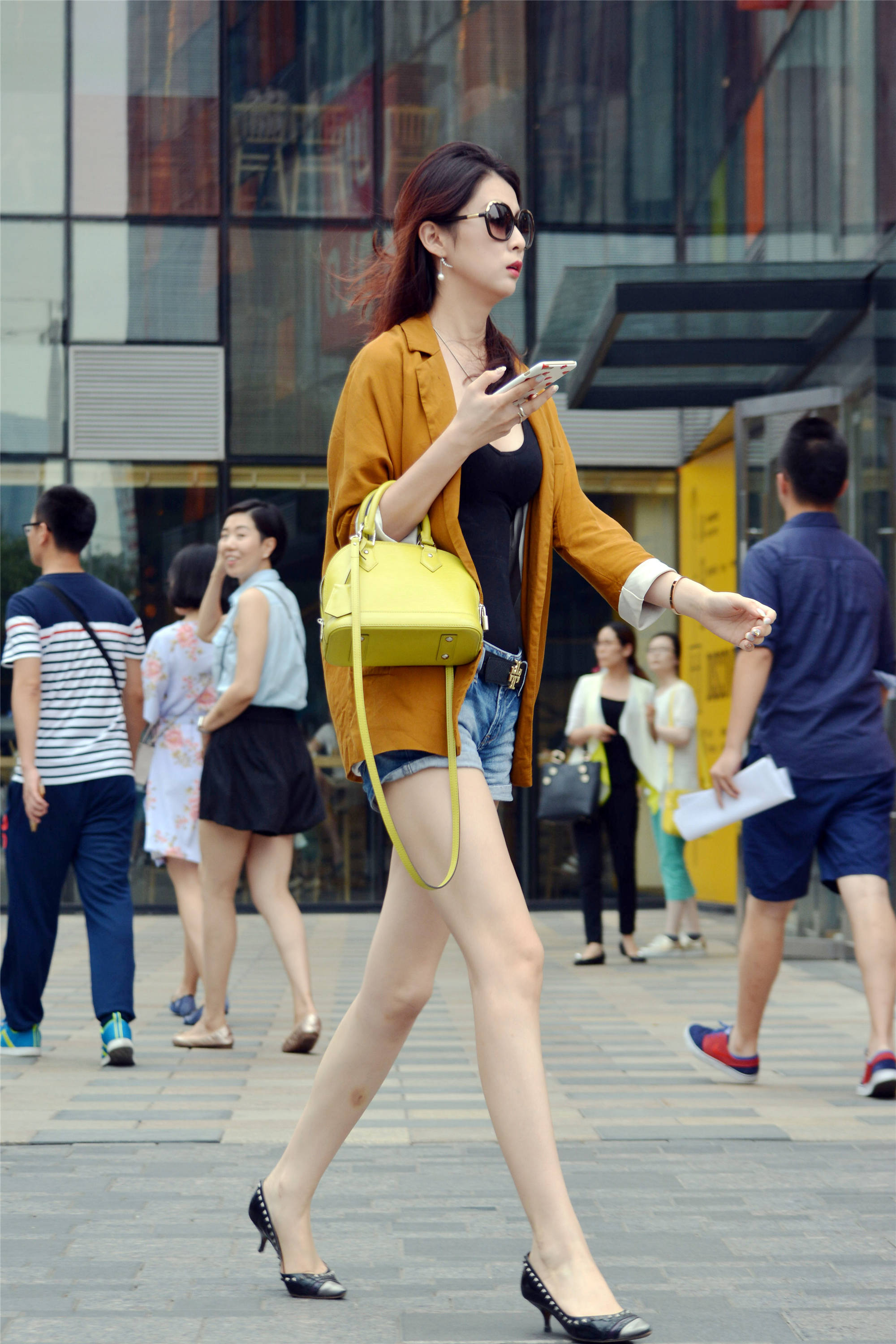 这么漂亮的一款鞋子,搭配一条低腰的翻边牛仔短裤,这样会显得非常休闲,也有个性的展示,一件棕黄色的小西服,这样有了混搭的风格展示,也更有了一点秋天的感觉,黑色的吊带,更有休闲的穿搭效果,很多人喜欢这样的混搭风格展示,也很适合这个季节来搭配。