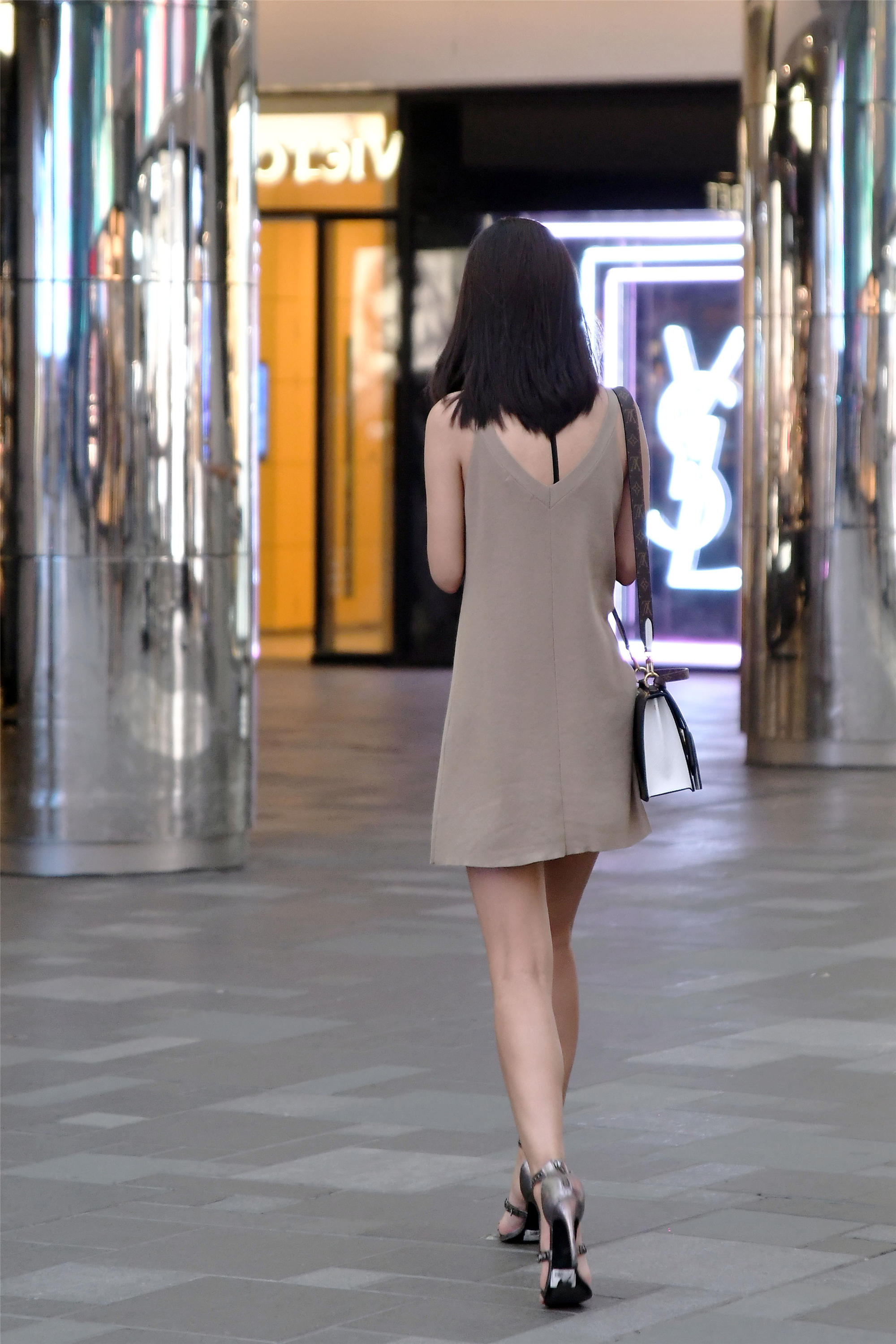 精致的女人,会穿着高跟鞋逛街,因为高跟鞋带来的时尚效果,会让她的搭配更加时尚漂亮,增高显瘦,还提升气质,大多数时尚姑娘对于高跟鞋没有什么抵抗力,看一下这位美女,穿着一件吊带的连衣裙,灰色的款式,非常简约,搭配一双细高跟,会让你觉得身材高挑,有个性突出,如果去掉高跟鞋,会显得很普通,这就是高跟鞋带来的变化。