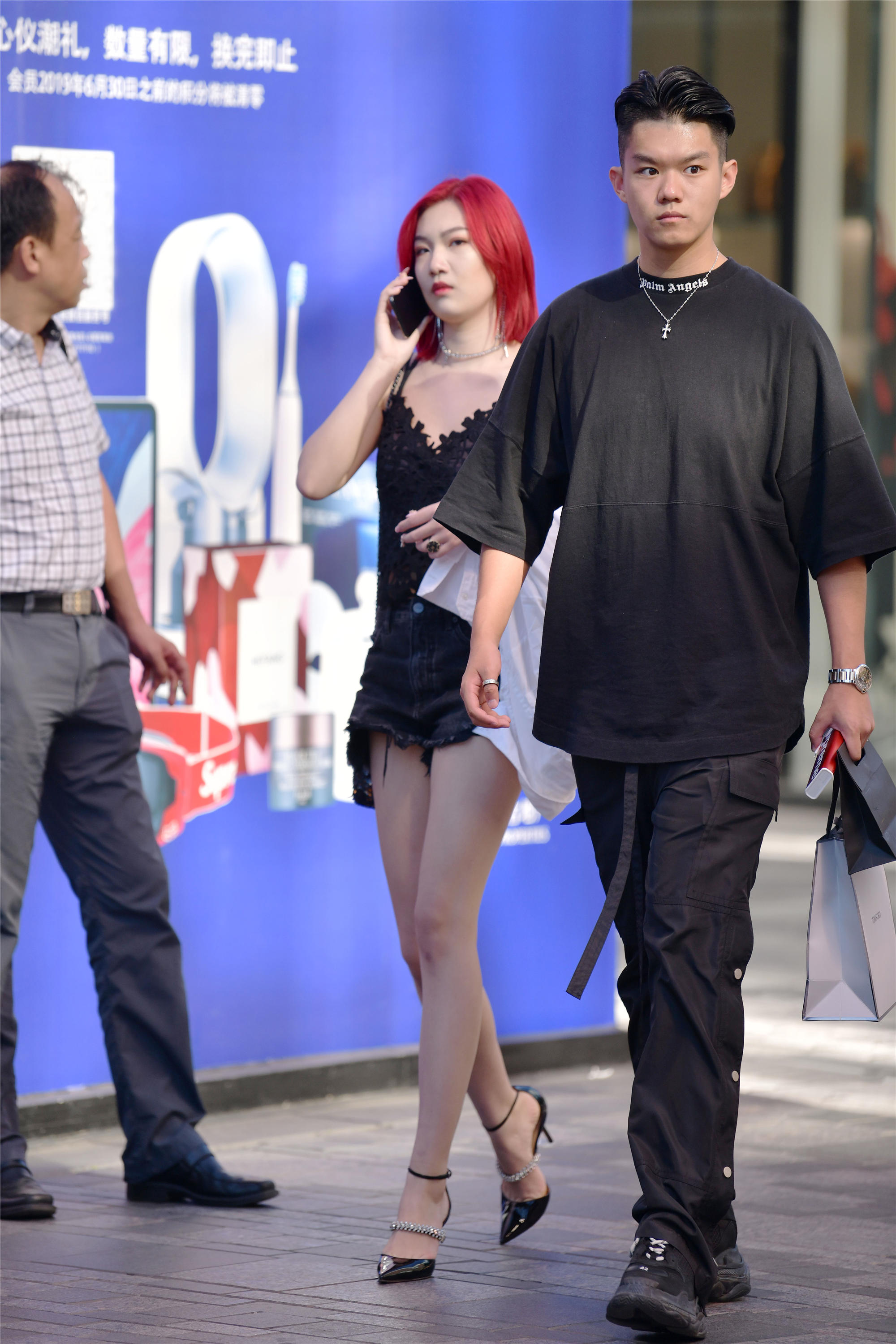 精致的姑娘,会把自己最美的一面呈现出来,她们每一次逛街,都会注意细节的搭配,这位美女穿着一件黑色毛边的牛仔短裤,搭配一件黑色吊带,有点蕾丝款式,非常好看,露出肩膀和锁骨,很多姑娘都会展示自己这一面,脚下一双尖头细跟凉鞋,更好的衬托姑娘的大长腿,姑娘是一位非常爱展示自己的,也很会搭配自己。