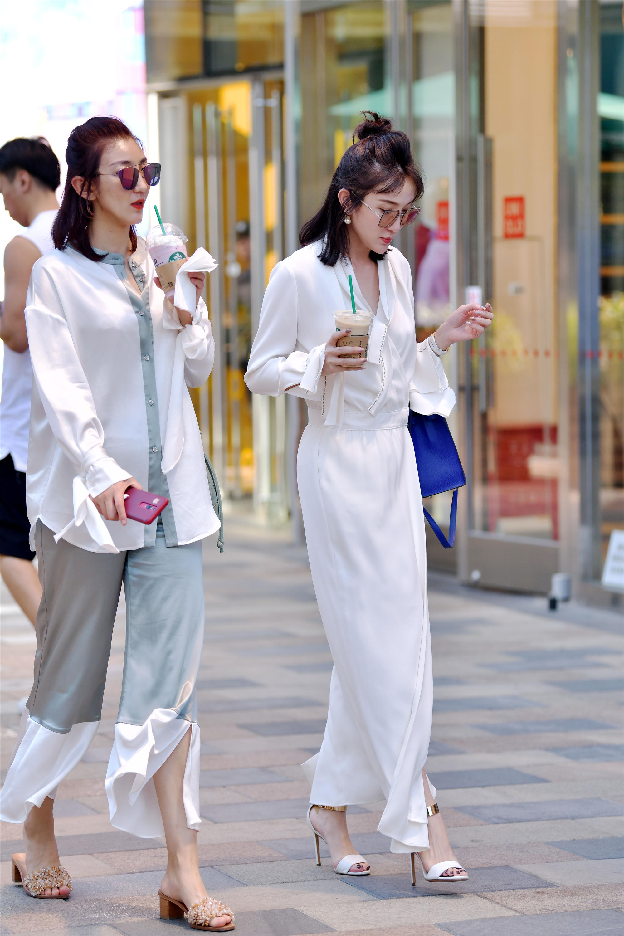 白色的裙子,会搭配出很精致的效果,很多长裙不会显身材曲线,但是却有着很优雅感觉,看一下这位美女选择的这款白色长裙,有点丝绸面料的效果,虽然裙子不是很宽,而且姑娘迈步也不是很大,体现着那一份优雅的效果,脚下的一字扣细高跟凉鞋,也是白色的款式,收腰设计显出很好的身材比例,非常好看的一身白色着装。
