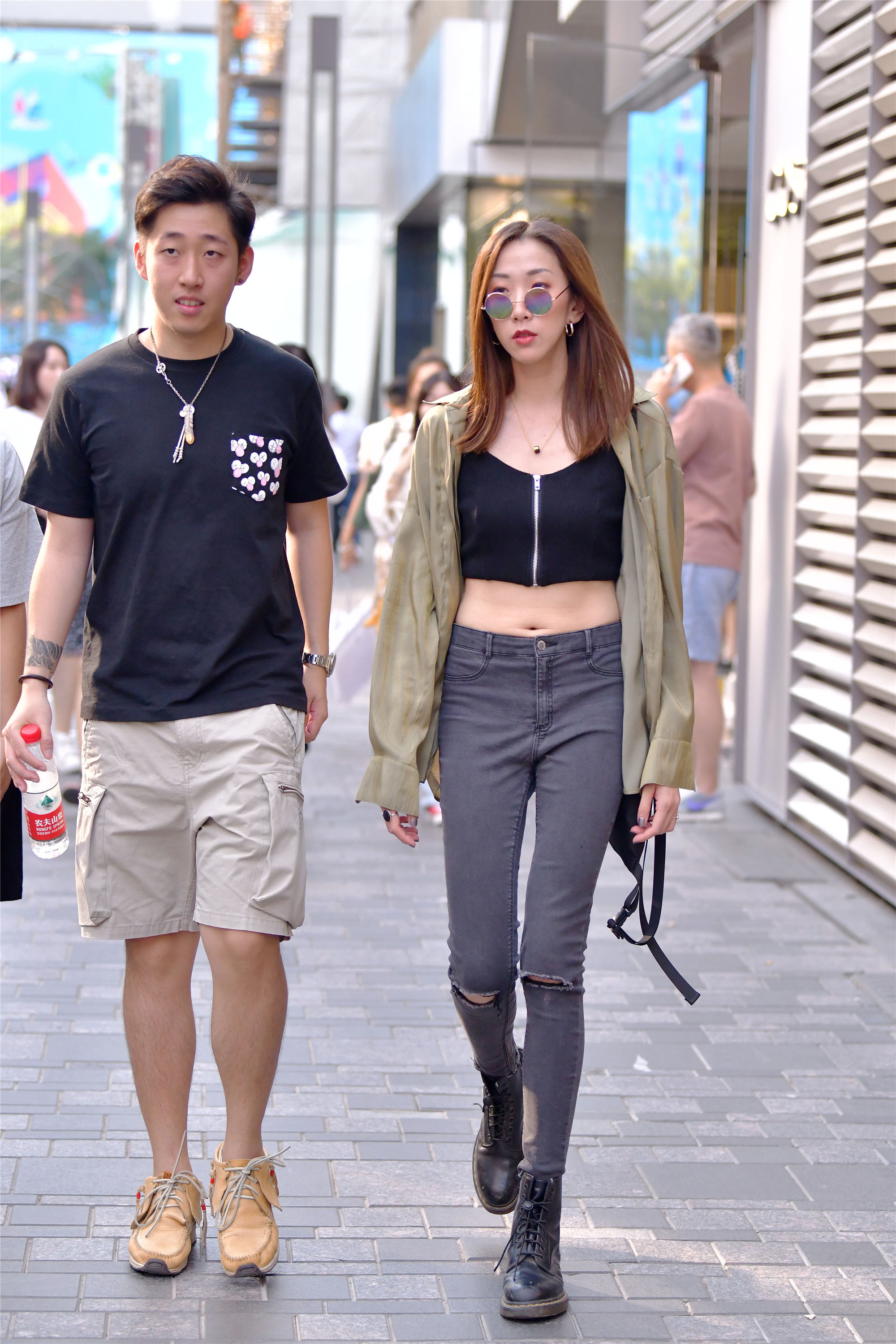 说牛仔裤不挑身材,确实是这样的,不同身材的姑娘,总能找到适合自己的牛仔裤,这位身材骨感的姑娘,选择一条深灰色的破洞牛仔裤,依旧显得人很骨感,搭配马丁短靴,有点酷酷的效果,黑色的小背心,外面一件小开衫,简单的搭配,让你感受季节的变化,这就是会搭配的姑娘,她们会用搭配告诉你季节,也会穿出自己的风格来。