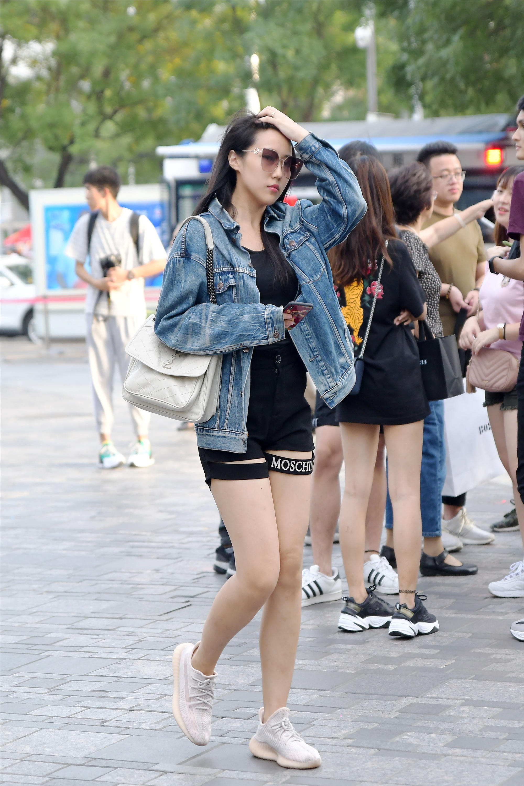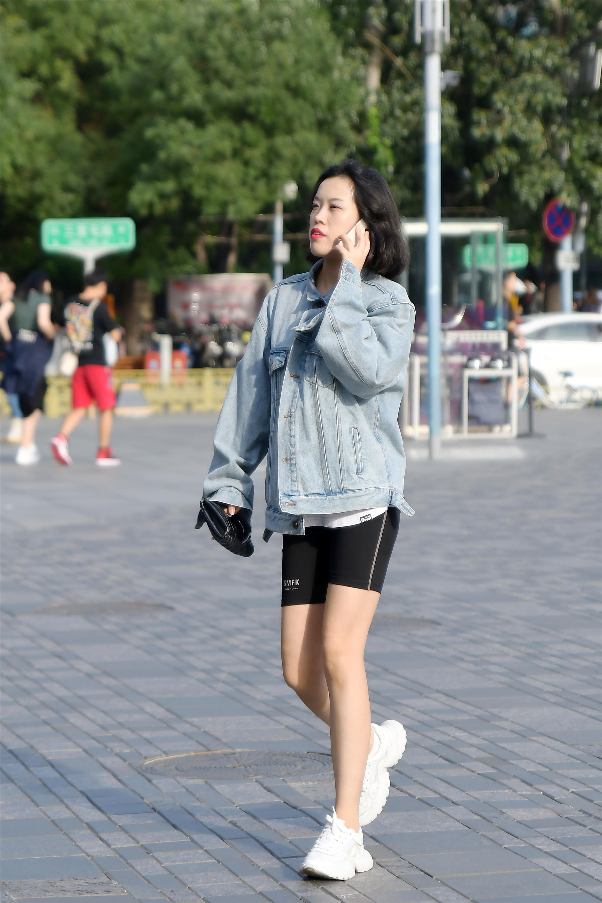 秋天,是一个很好的搭配季节,很考验人怎么去搭配,和夏季的搭配很相似,又有着不同,这位美女选择浅蓝色的牛仔服,衣襟也不是短衣襟的,搭配修身短裤,脚下一双白色运动鞋,给人感觉更像是一位运动的姑娘,头发不是很长,却很浓密,发型对一个人来说是比较重要的,会让人看起来更加精致一些。