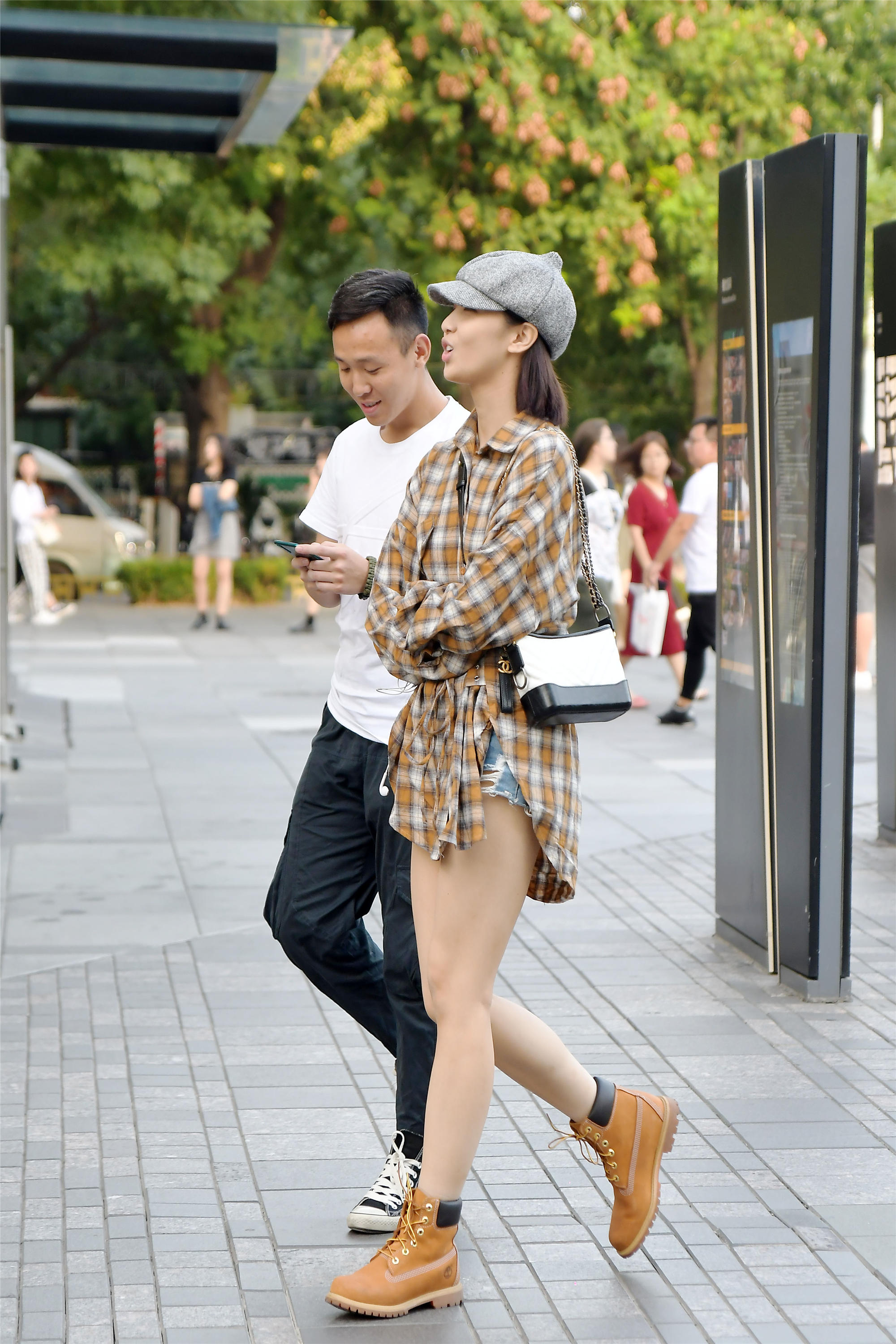 时尚的姑娘,喜欢的风格也有着很大的不同,有人喜欢搭配一点中性风的效果,还要带着一点女士的感觉,就像这位小姐姐的穿搭,一件偏黄色的格子衬衫,前后衣襟不一样长,有着休闲款式的效果,遮住自己的牛仔短裤,一顶高级灰的帽子,搭配一双棕色的马丁短靴,是不是显得人很个性呢?