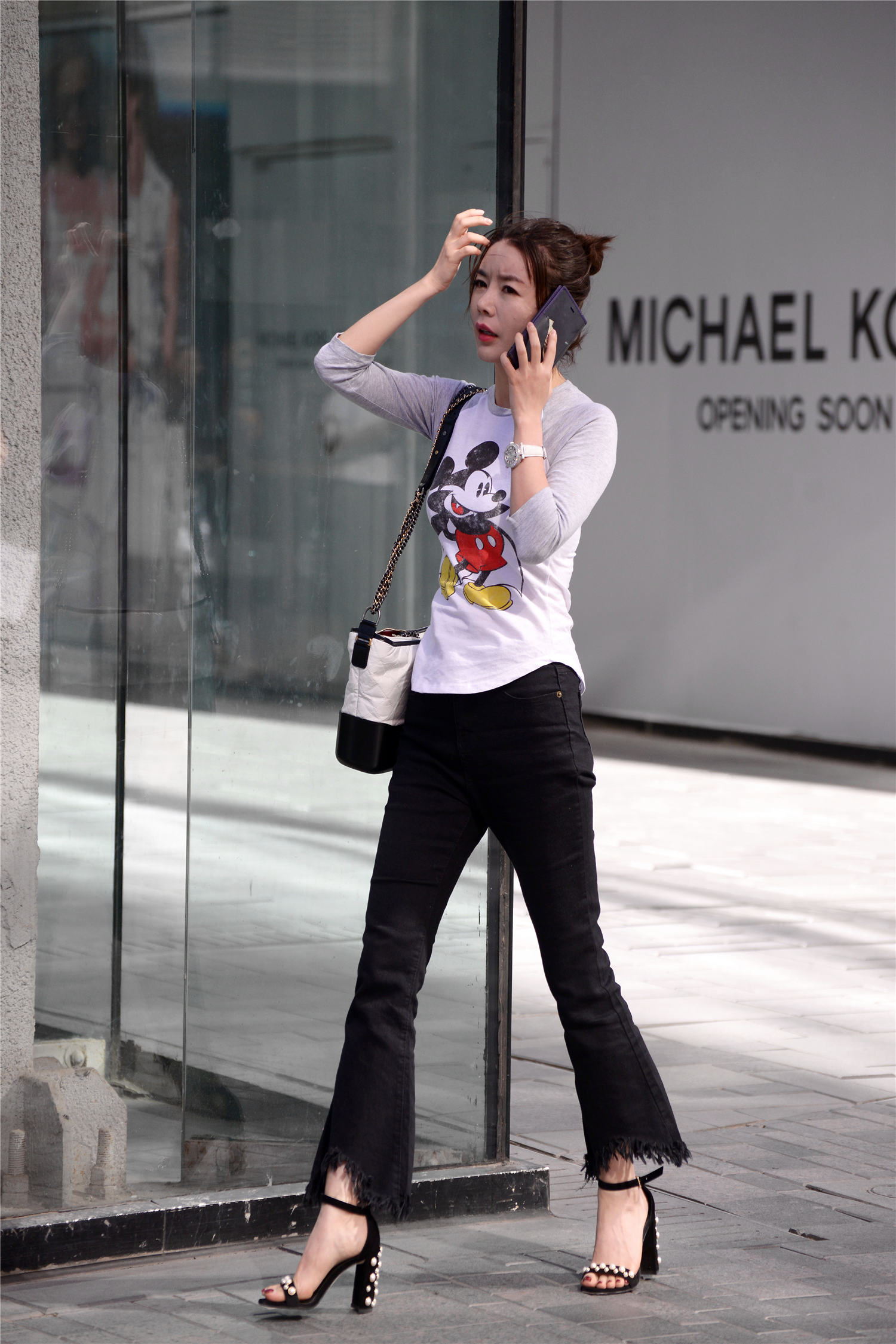 搭配高跟鞋街拍美女时尚 |