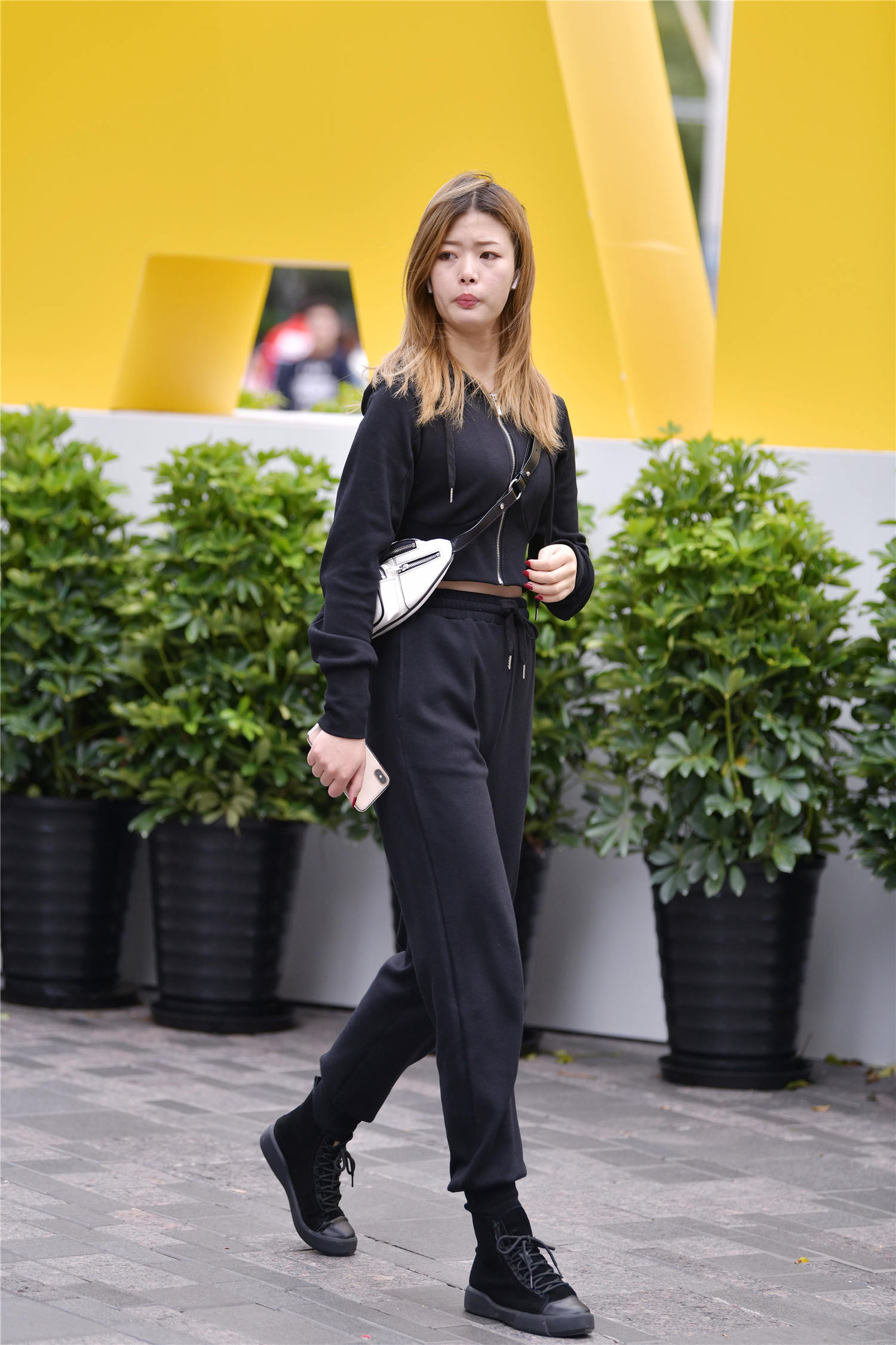 如果在秋天想搭配一身黑色服装,怎么选择?如何搭配出层次感,先看一下这位时尚姑娘的穿搭,一件黑色短衣襟的小衫,搭配一条黑色高腰长裤,露出一点腰线位置,这样就有了层次感,还衬托出身材比例的效果,脚下一双黑色短靴,裤子的裤腿直接收到短靴里面,这样会有着一点干练风的展示,也显得人很精致。