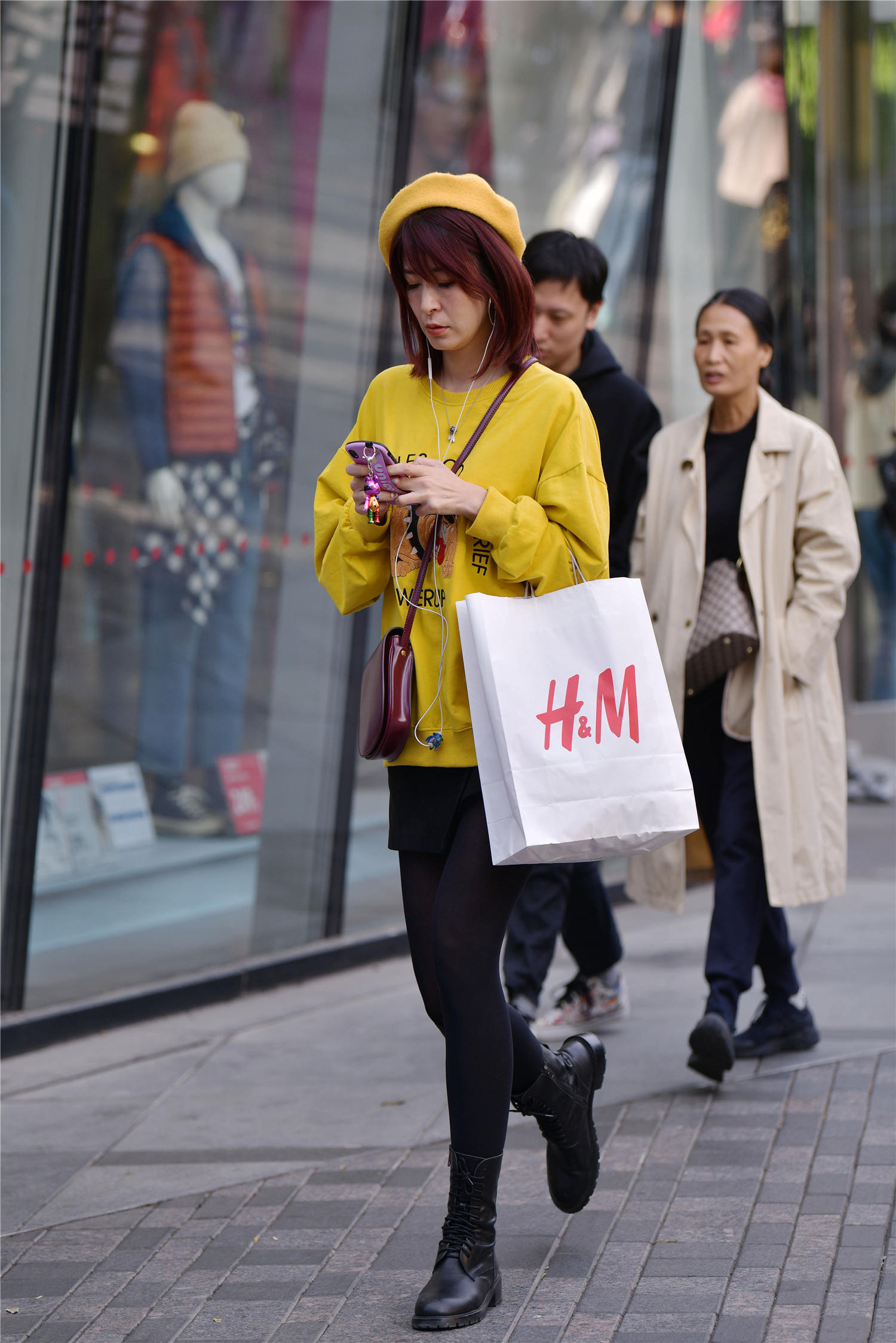 秋天有些时尚美女会搭配得很保暖,这样自己不会冷,看一下这位美女的穿搭,一顶黄色的帽子,让人看起来很精致,搭配一件黄色的卫衣,休闲时尚,显得个性十足,搭配一条黑色短裤配上黑色打底裤,这样黑色有层次,也搭配出很保暖的效果来,脚下穿着一双黑色系带短靴,初秋时节这样搭配不会冷。