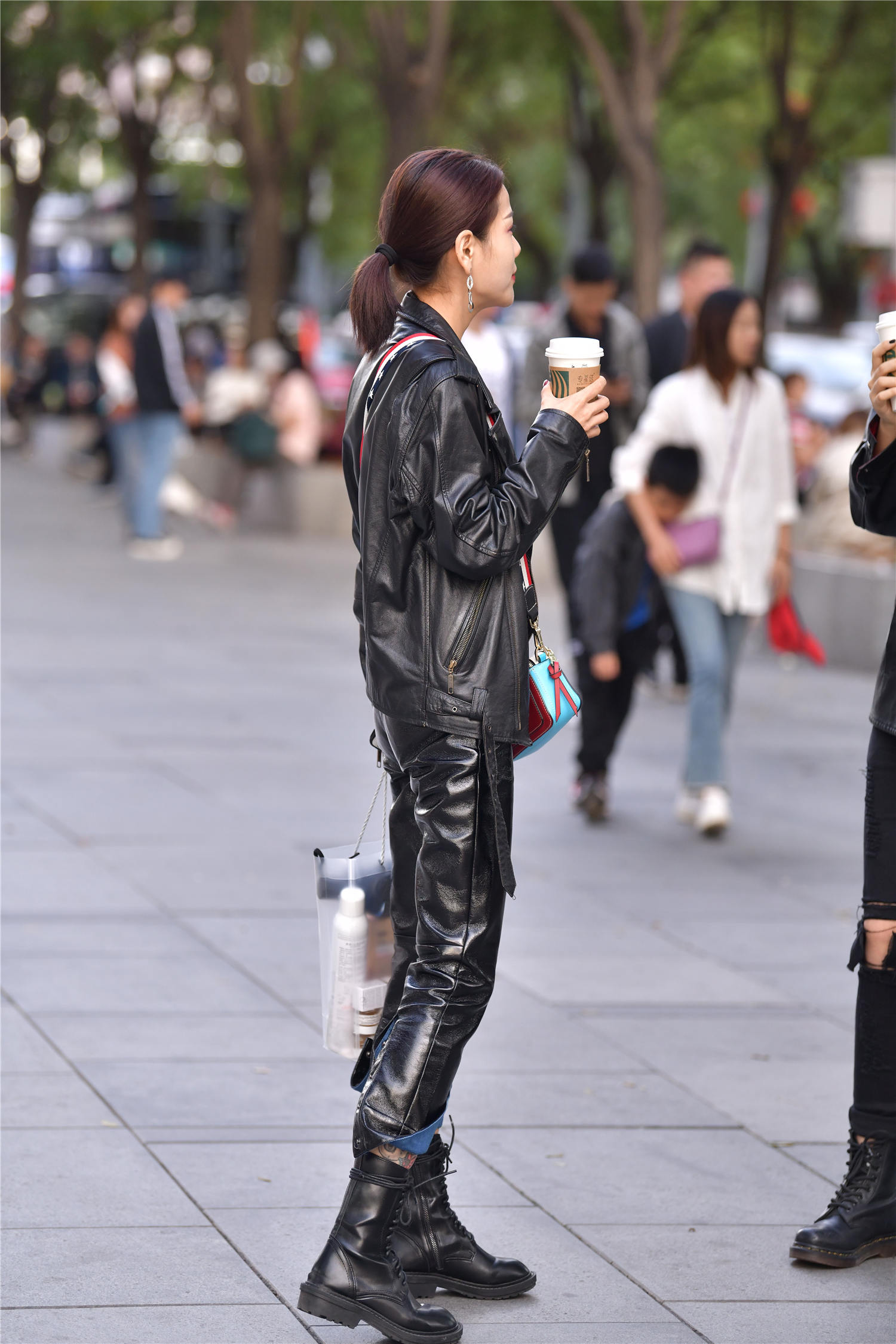 初秋时节,可以搭配皮衣皮裤出行,也会穿出很美的效果,展现出不一样的味道来,看一下这位时尚姑娘的穿搭,一条黑色皮裤搭配一件皮夹克,脚下穿着一双黑色皮质短靴,这样搭配很有气质,也显得人很精致,而且还搭配出很有质感的效果,虽然是一身黑色,却看着很有个性的效果,如果你也喜欢皮衣,可以尝试一下这样的搭配。