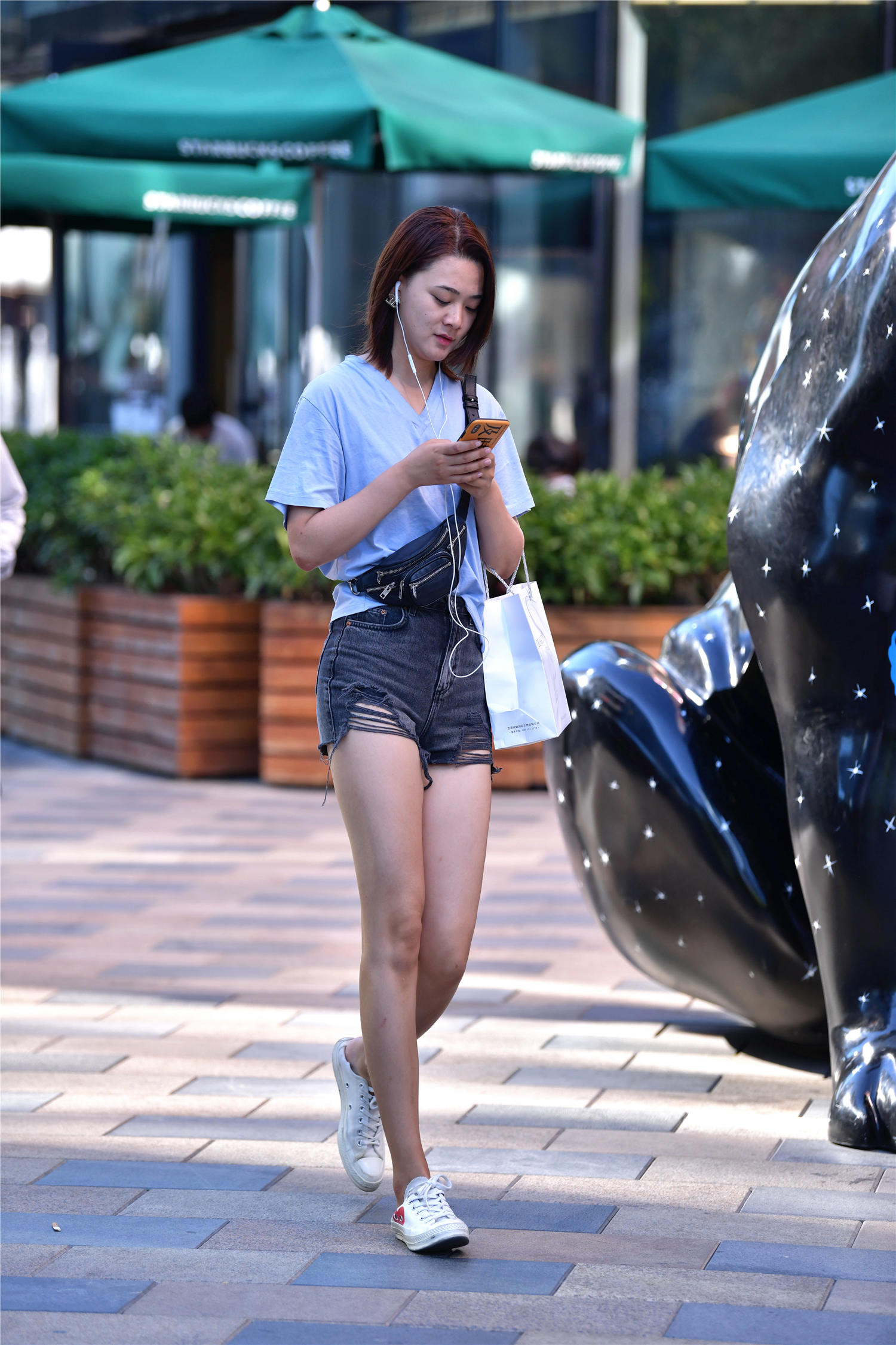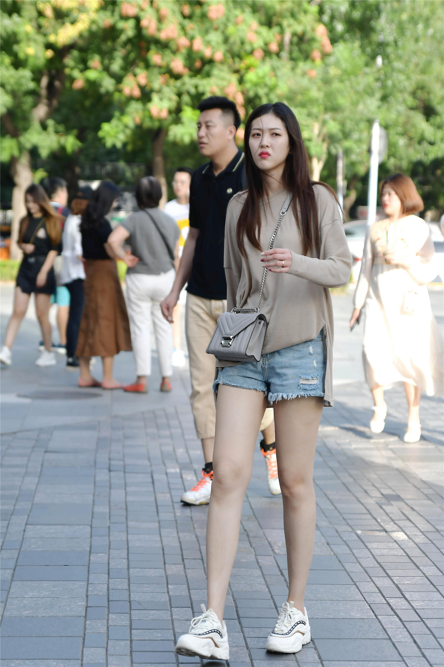 很多人都有自己喜欢的季节,在这个季节,有着她们相搭配的服装,这样会展示出很好的效果,很多喜欢短裤的姑娘,到了秋天,依旧要搭配短裤出行,这位美女选择浅蓝色的毛边牛仔短裤,搭配一件灰色的长袖衫,很保暖的效果,侧面一个开叉,把衣襟卷曲来一些,露出短裤,脚下穿着一双运动鞋,这样搭配会有着显年轻的效果。