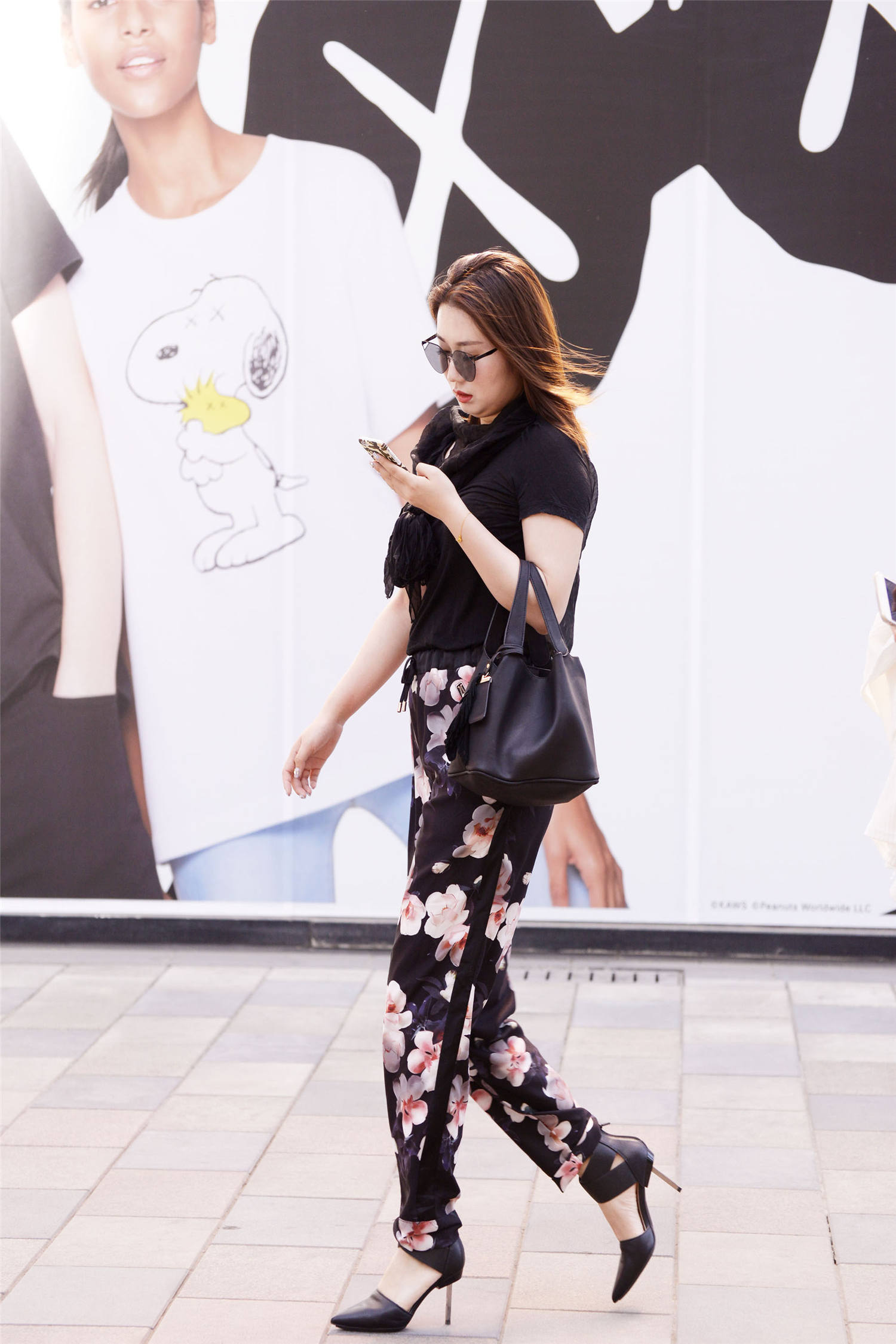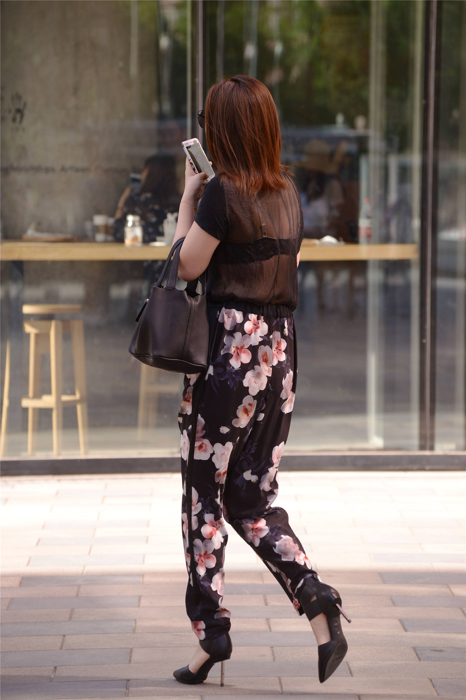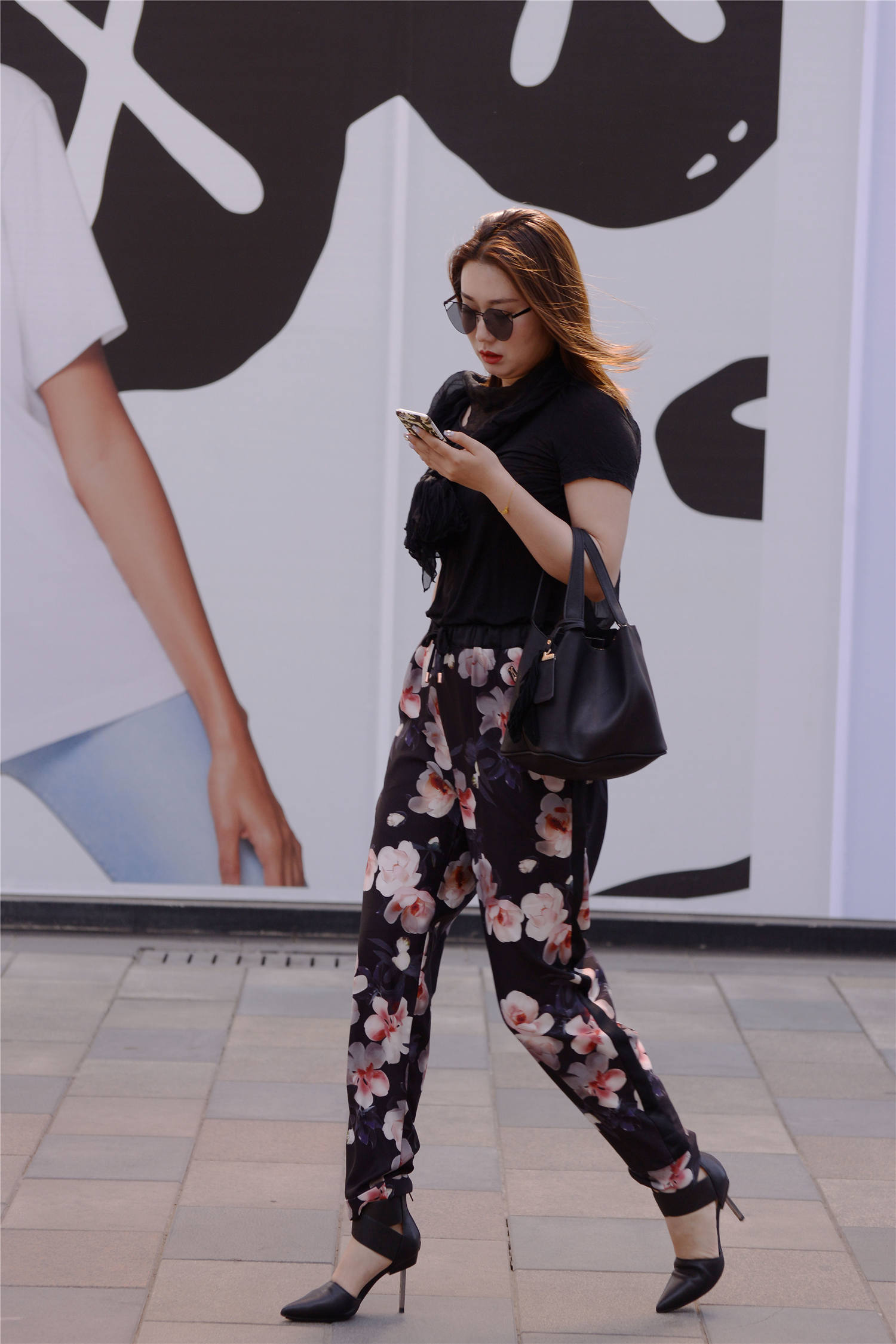 高跟鞋搭配印花长裤,简约大气,好看又时尚