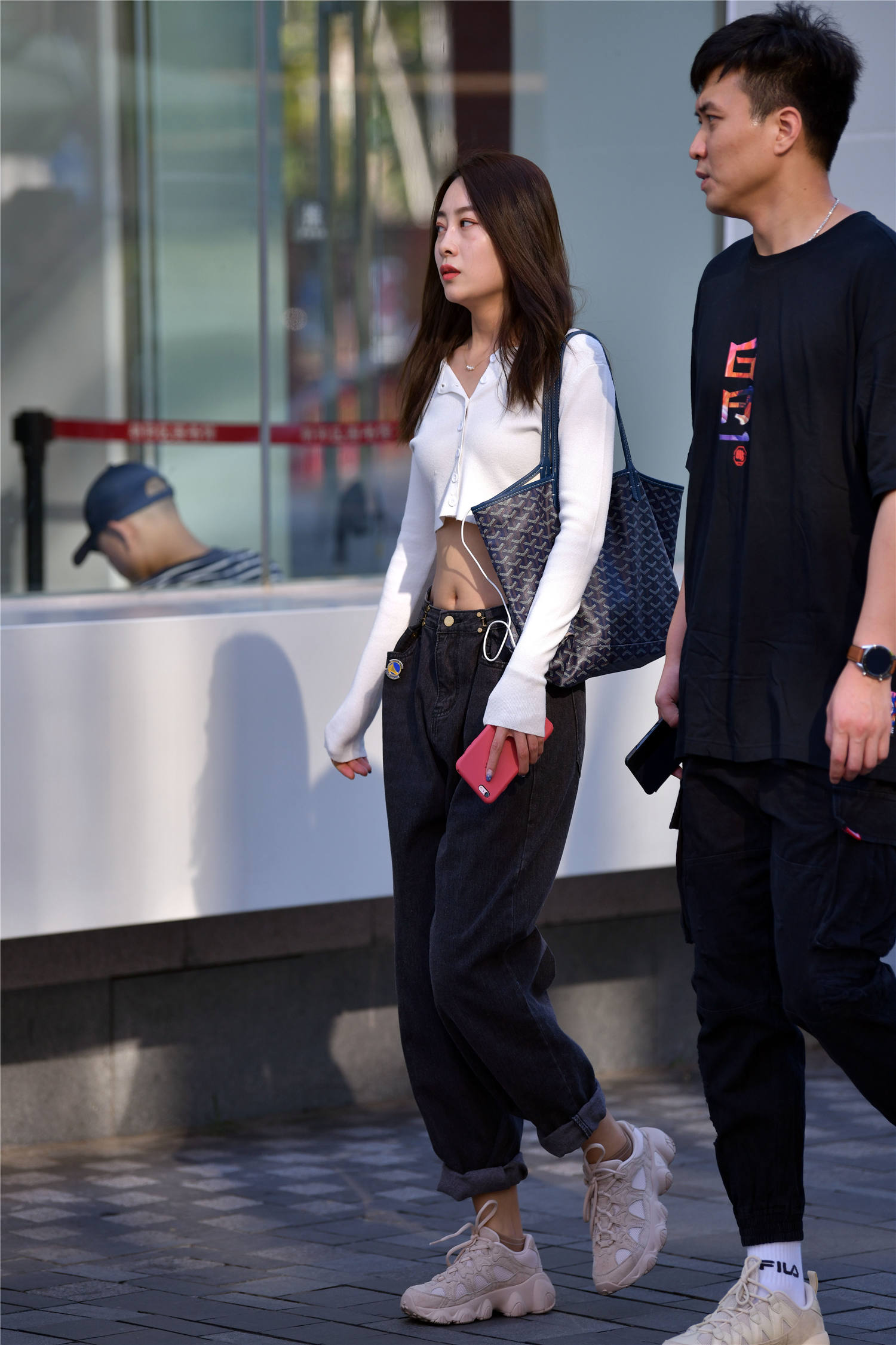到了秋天,更适合搭配长裤,而且穿着长裤的人很多,爱美的姑娘,会把自己搭配出很精致的感觉,看一下这位姑娘的搭配,一条黑色宽松的长裤,裤脚挽起,露出一点脚踝位置,脚下的浅色运动鞋,也很好看,搭配一件白色的短衣襟长袖小衫,穿出露脐装的效果,是不是有着不一样的搭配,也有了不一样的秋天感觉呢?