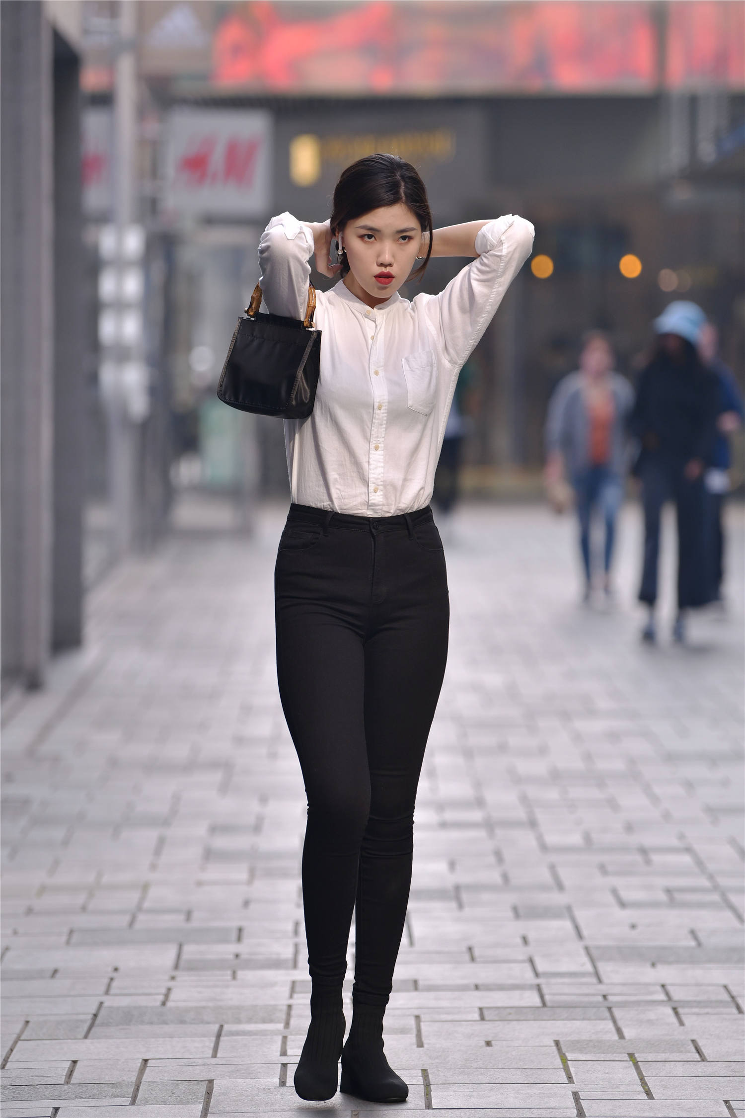 长裤的搭配有很多种,你喜欢什么风格的?修身的,正式的,休闲的,都会搭配出很美的效果,这位小姐姐搭配一条黑色修身长裤,高腰的款式,搭配出很显身材的效果,突出身材比例,白色的衬衫,这样简单的黑白色,衬托身材高挑匀称,这样的搭配很简单,也很漂亮,搭配会让你变得不一样,让你的生活变得更有品质。