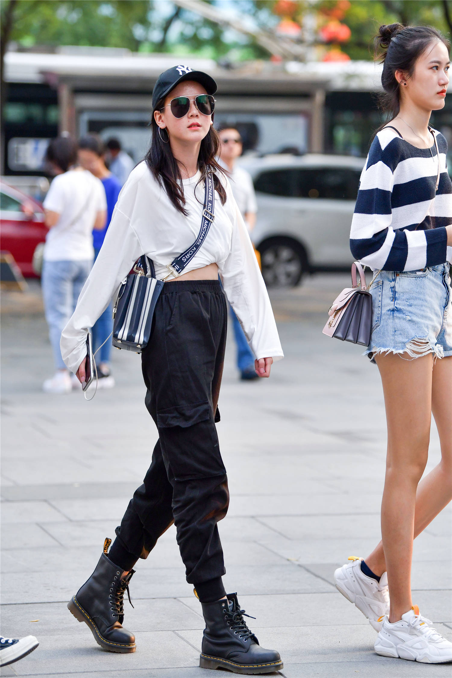 秋天,很多人喜欢穿搭短靴,有着保暖的效果,也搭配出精致的味道,不同的款式,展现出不一样的风格,看一下这位姑娘的搭配,黑色工装裤搭配工装短靴,有着中性风的展示,还有着干练的效果,还很有层次感,一件白色卫衣,姑娘把衣襟挽起,露出一点腹部,搭配出很显身材比例的效果,也有着年轻的感觉。