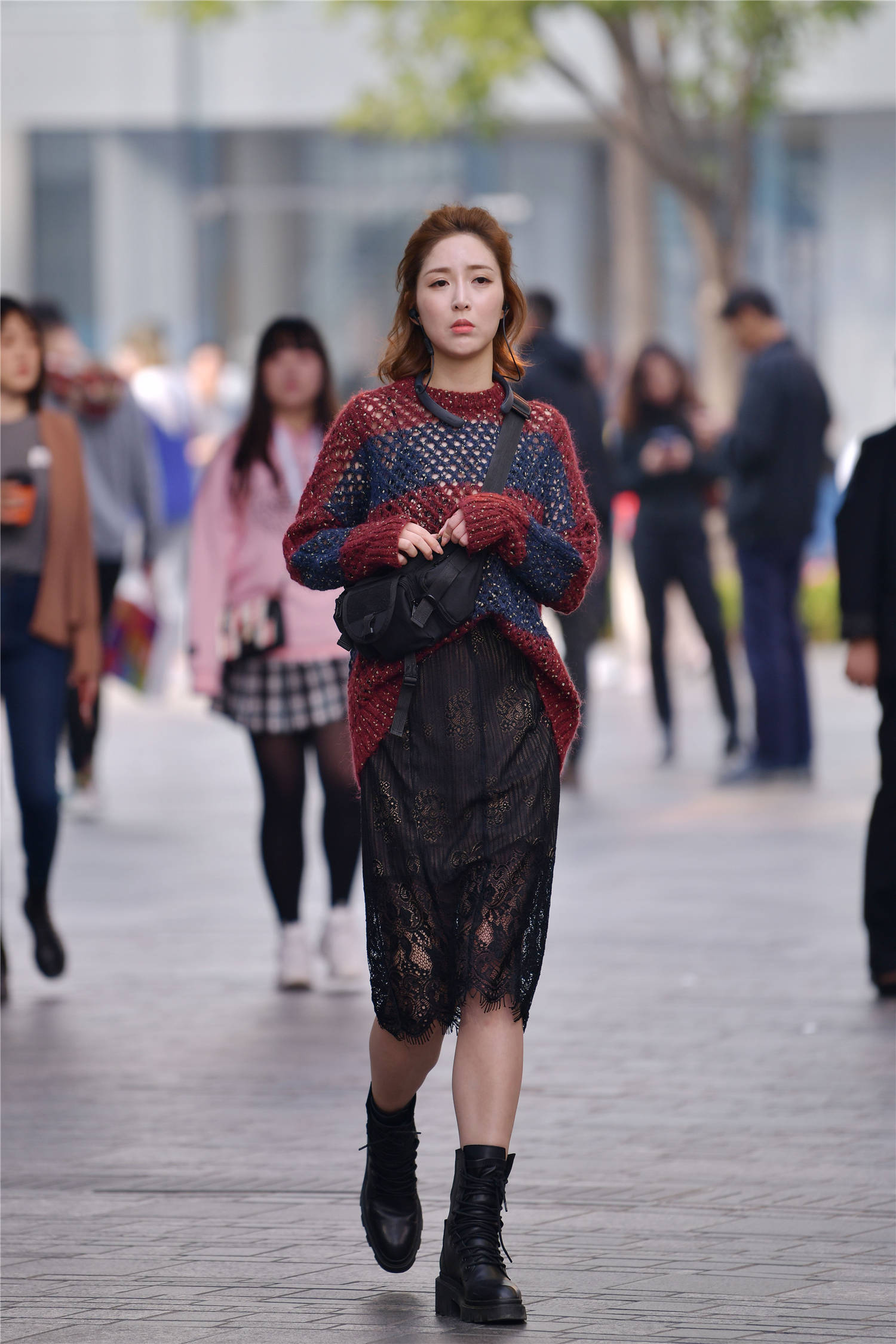 很多人喜欢穿着裙子,长裙也会有着很好看的效果,遮挡腿型,也穿出漂亮的效果,看一下这位美女的穿搭,黑色的蕾丝裙,总是让你感觉不是很保暖,时尚漂亮这是大家都认可的,所以才会有那么多人喜欢,也会穿搭出门,过膝的长度,很好看,一件针织的羊毛衫,镂空的设计,非常有层次感,也增加神秘的效果,脚下一双黑色短靴,起到很好的保暖效果。