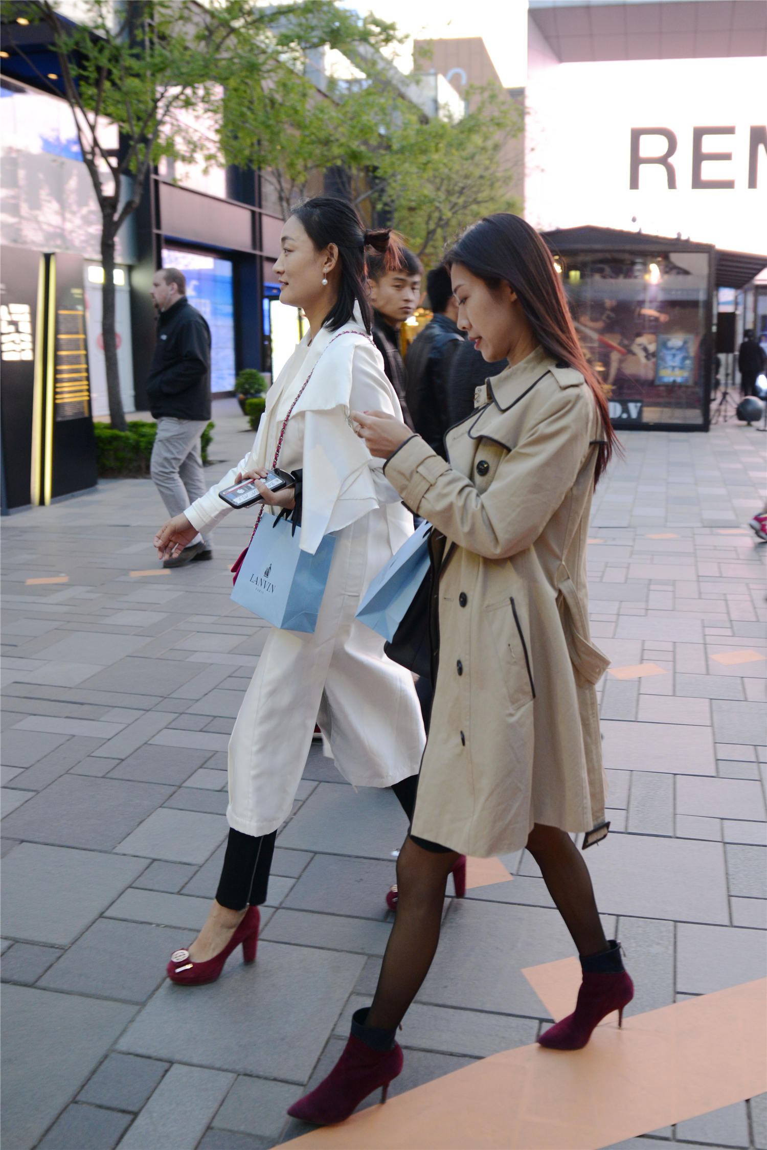 闺蜜都穿着风衣,搭配不同高跟鞋,展现不一样的时尚味道