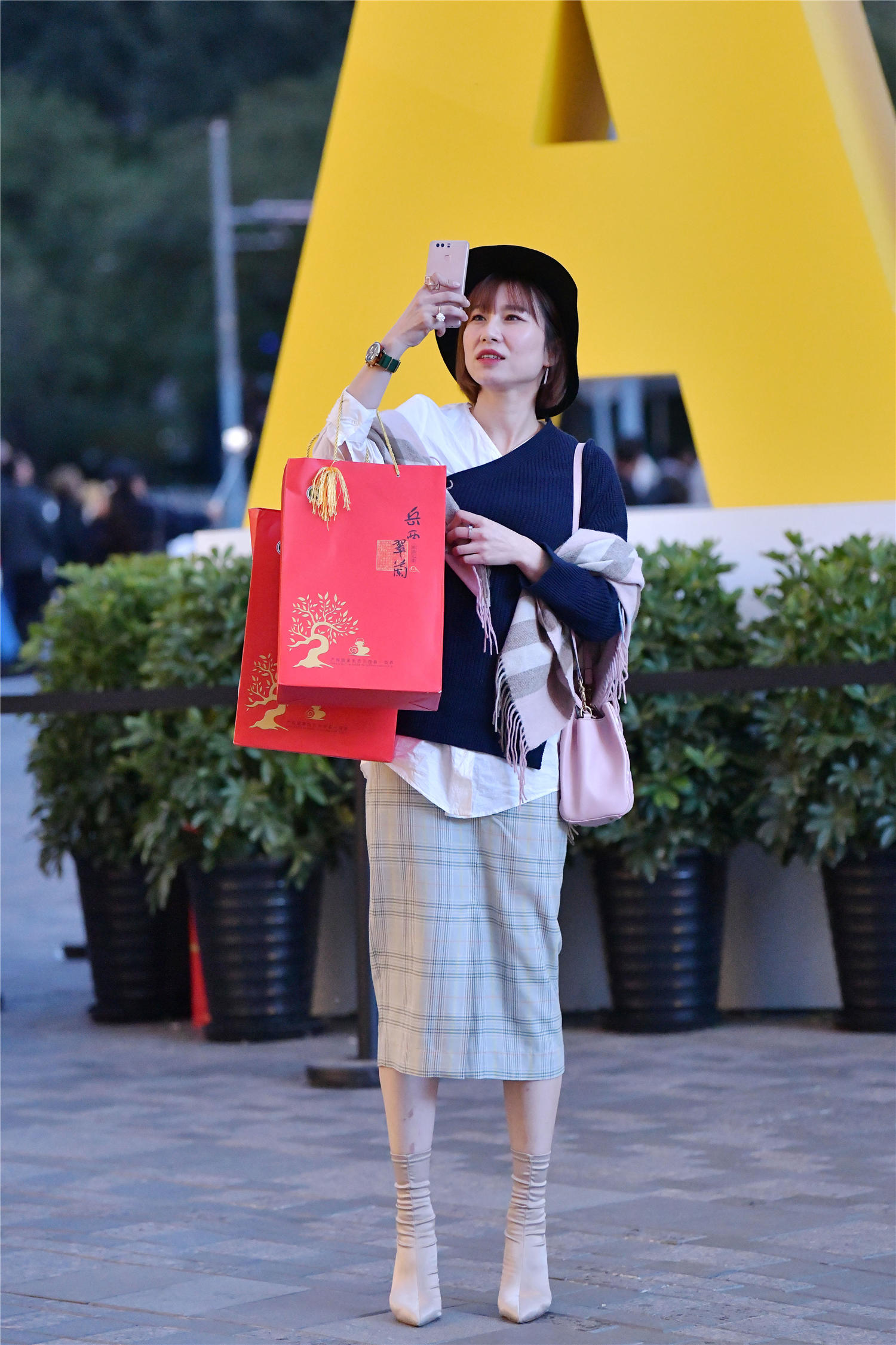 秋冬季节,选择半身裙的美女,依旧搭配出时尚精致效果