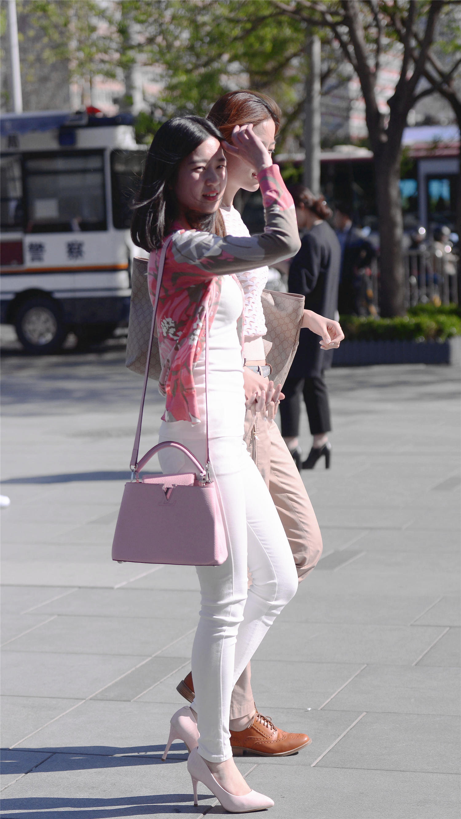 这位美女选择一款白色牛仔裤,修身的款式,裤脚稍微有点长,到脚踝的位置,很好的展现她的身材,而且白色也显得人很干净,修身的款式,又很好的展现出身材曲线,搭配一件白色修身的衬衣,外面一件花色的外套,增加色彩和层次,如果都是白色,就会觉得没有变化,这一件外套,让她的搭配变得不一样。
