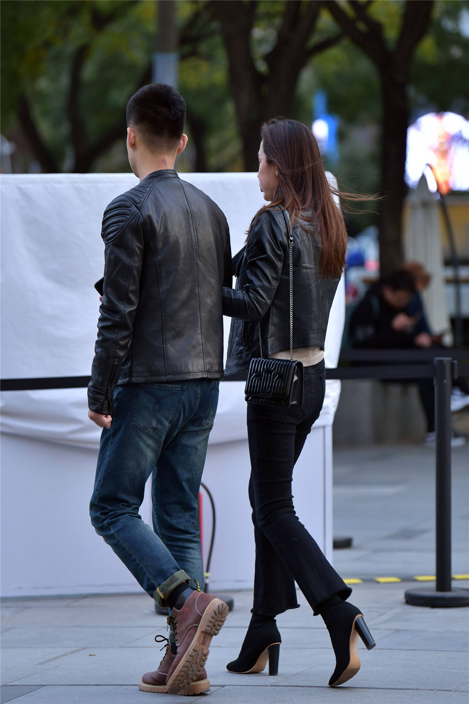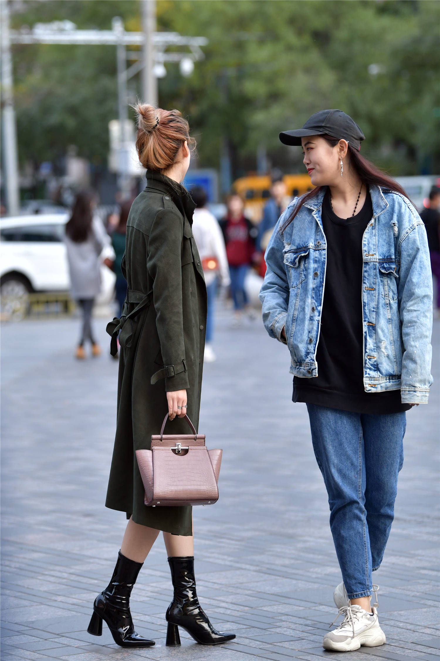 时尚街区的姑娘,穿着短靴都选择高跟款式,这样才显身材