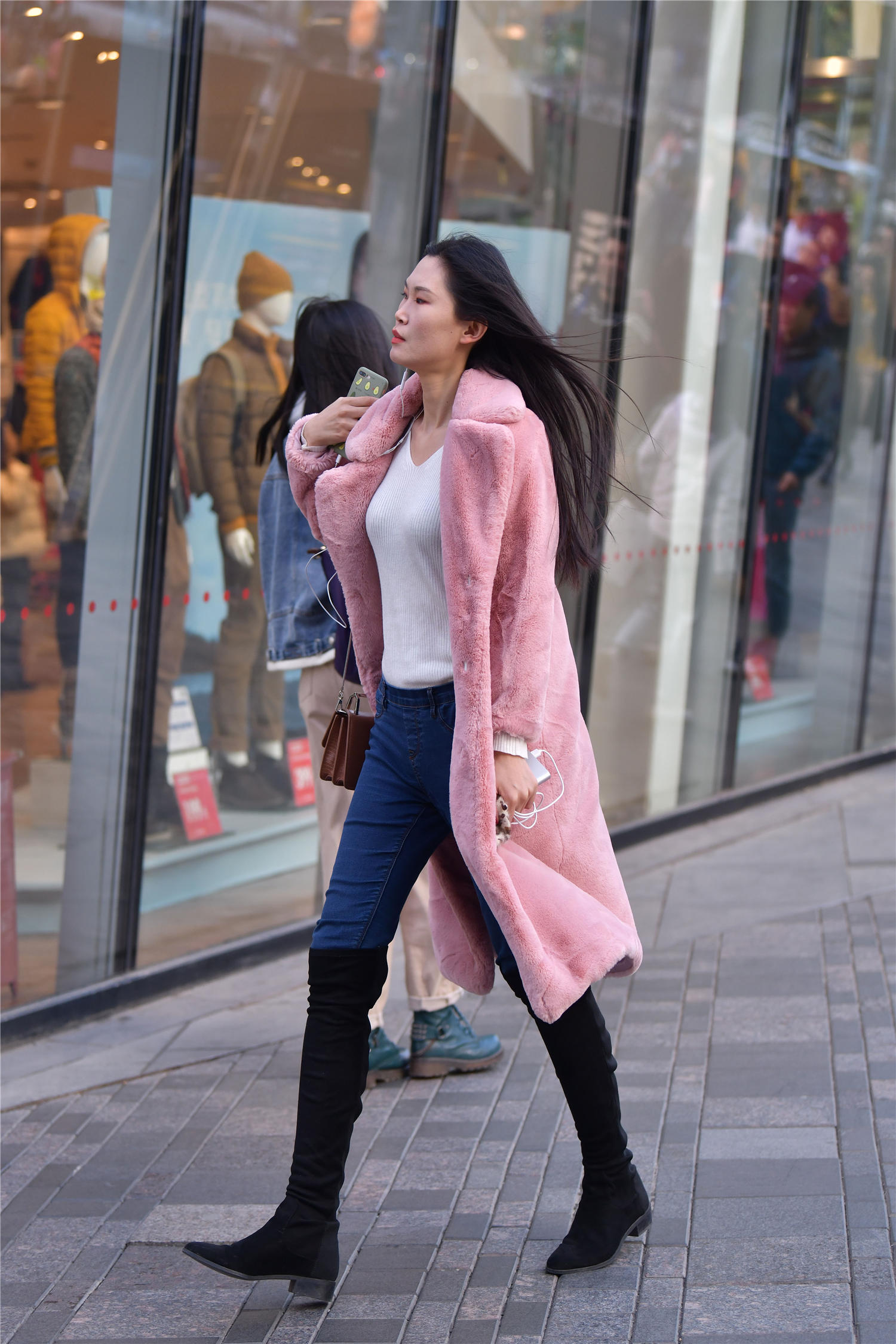 每一位时尚姑娘的搭配,都有着自己的想法,色彩和款式,都会有着自己的独特见解,看一下这位身材高挑的姑娘搭配,一款浅粉色的抓绒大衣,有着很保暖的感觉,看着也非常厚实,白色的衬衣搭配深蓝色修身牛仔裤,一双过膝长靴,更好展现身材,修身的黑色,也有着显身材苗条的效果,不是高跟的款式,逛街会很轻松。
