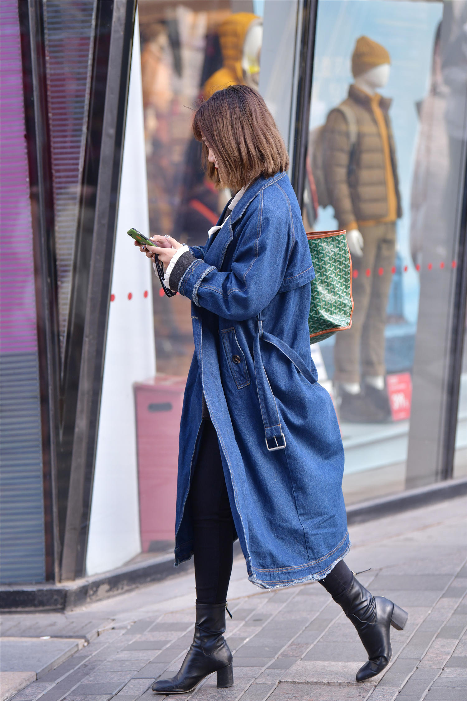 到了初冬时节,很多时尚姑娘注意保暖,虽然还没有穿上厚实的羽绒服,但是大衣的搭配,却非常流行,如何将大衣穿出精彩,很多姑娘都有着自己的搭配想法,这位美女选择一款蓝色牛仔大衣,色彩很均匀,简单又好看,搭配黑色修身裤与黑色皮质短靴,粗方跟不高,却也衬托出很精致的效果,冬季的搭配有了色彩,会更好看。