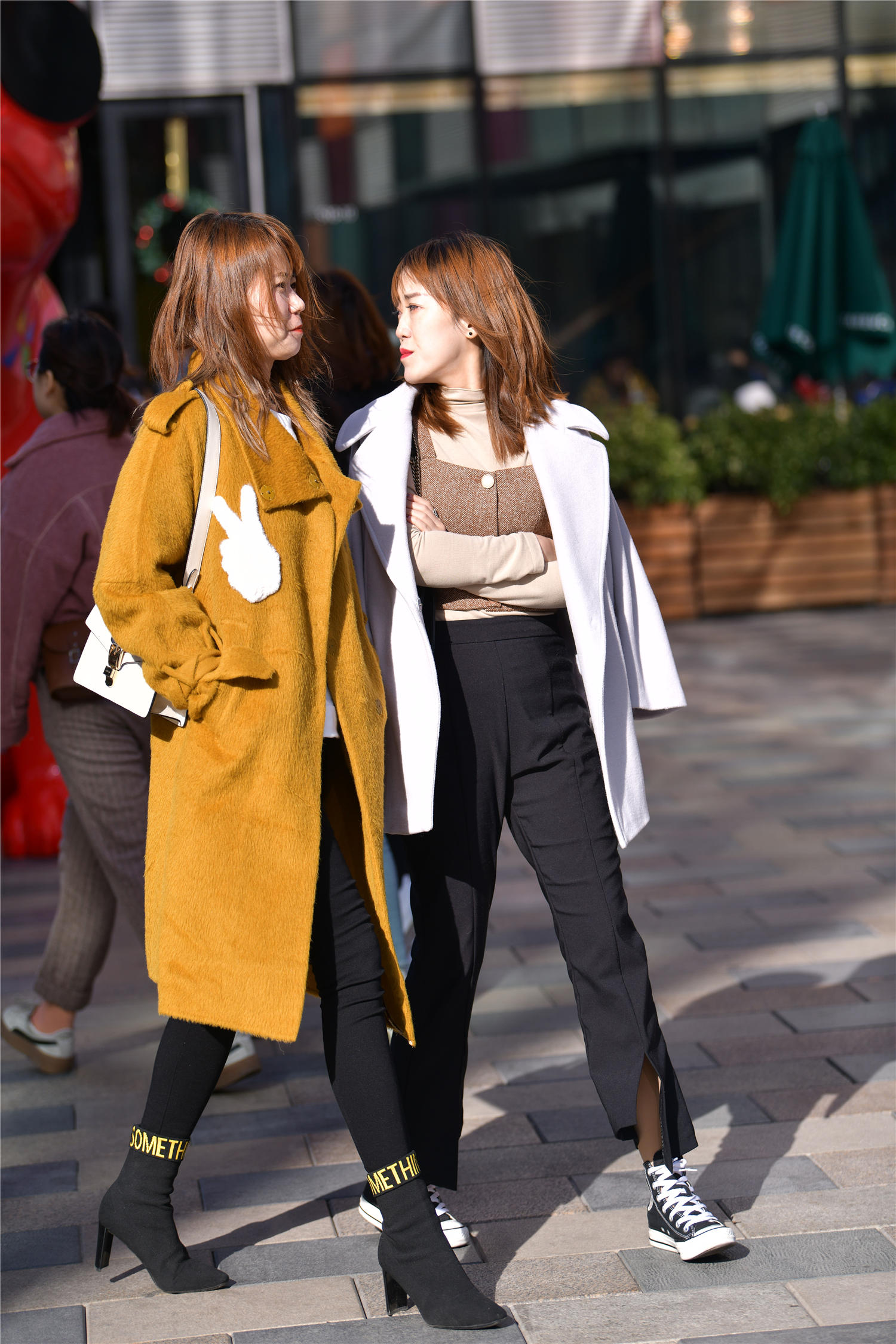 到了初冬时节,树叶凋零,城市里的色彩减淡,但是时尚姑娘的穿搭色彩,却让你感觉搭配的美,这位美女选择一款黄色呢子大衣,过膝的衣摆,却不会显得太长,还好看,黑色修身长裤搭配一双尖头高跟袜靴,袜靴上的黄色字母点缀,增加层次感,也衬托身材高挑,穿搭处很有色彩的效果。