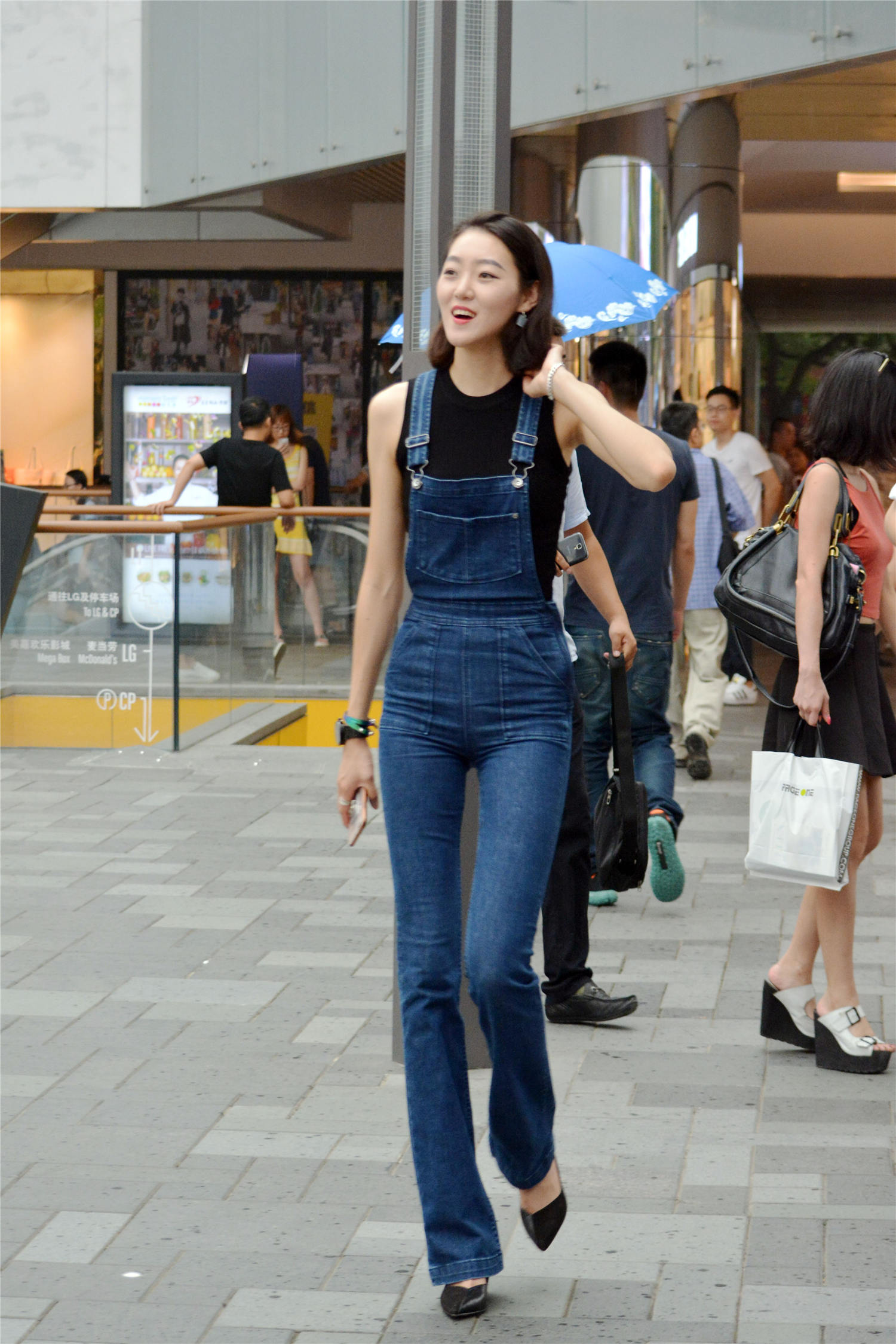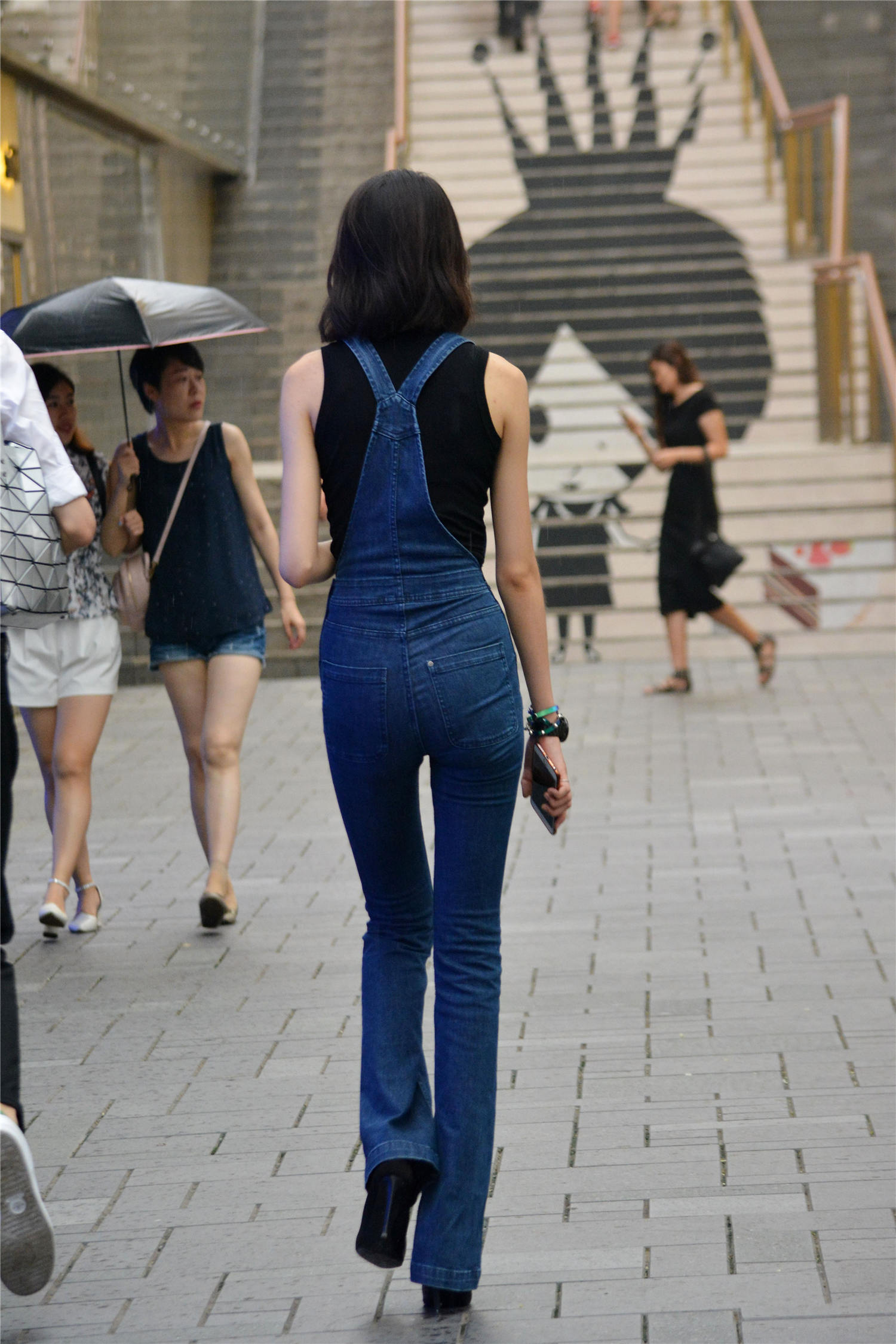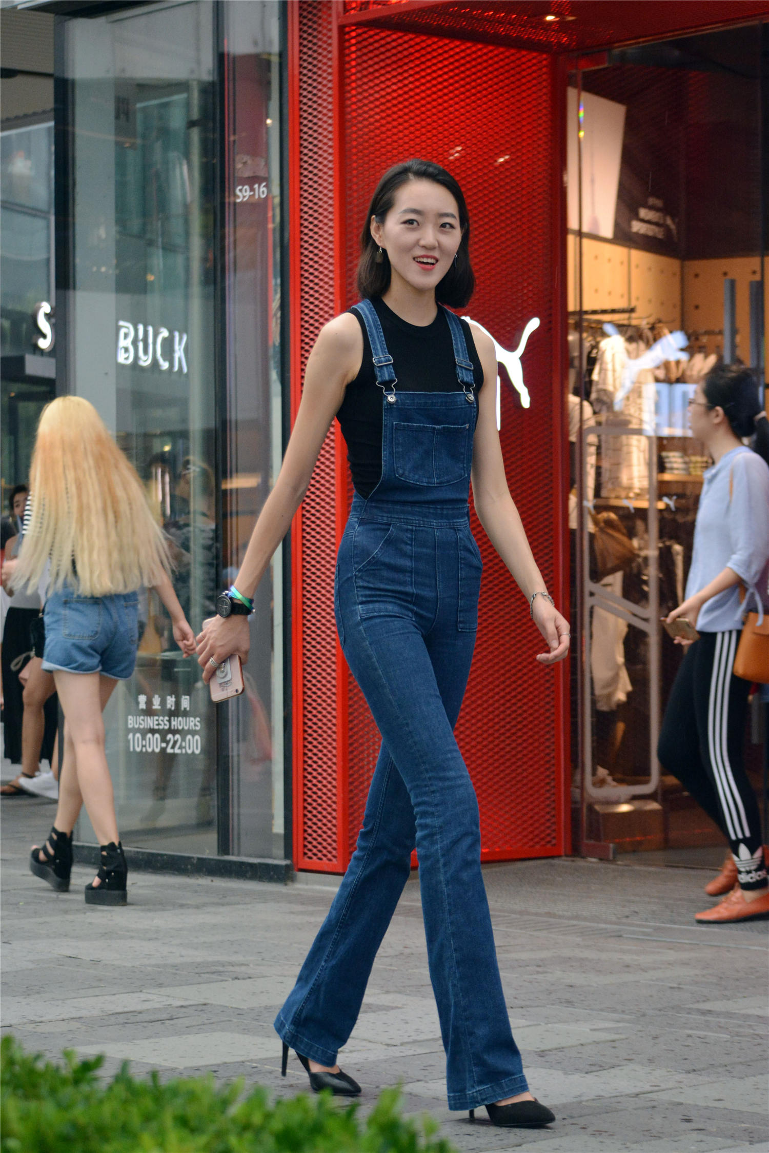 牛仔背带裤,身材高挑的姑娘穿出美感,脚下的高跟鞋起到点睛作用